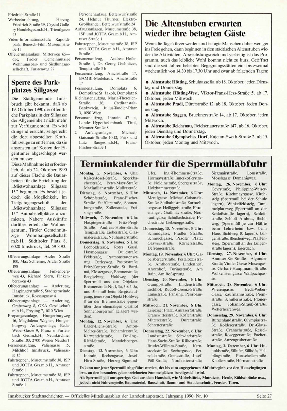 Innsbrucker Stadtnachrichten — Offizielles Mitteilungsblatt der Landeshauptstadt. Jahrgang 1990, Nr. 10