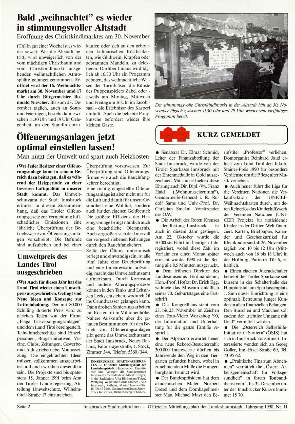 Innsbrucker Stadtnachrichten — Offizielles Mitteilungsblatt der Landeshauptstadt. Jahrgang 1990, Nr. 11