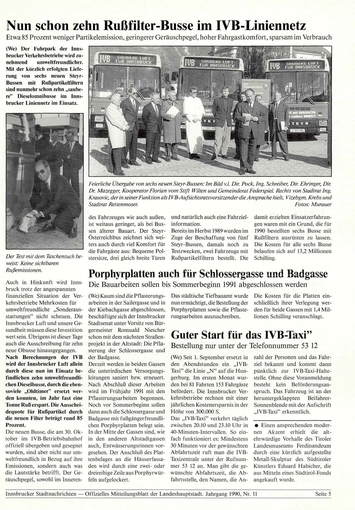 Innsbrucker Stadtnachrichten — Offizielles Mitteilungsblatt der Landeshauptstadt. Jahrgang 1990, Nr. 11