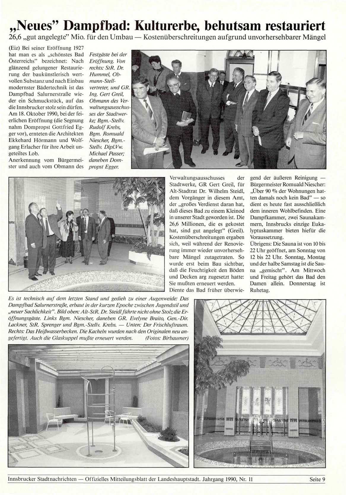 Innsbrucker Stadtnachrichten — Offizielles Mitteilungsblatt der Landeshauptstadt. Jahrgang 1990, Nr. 11