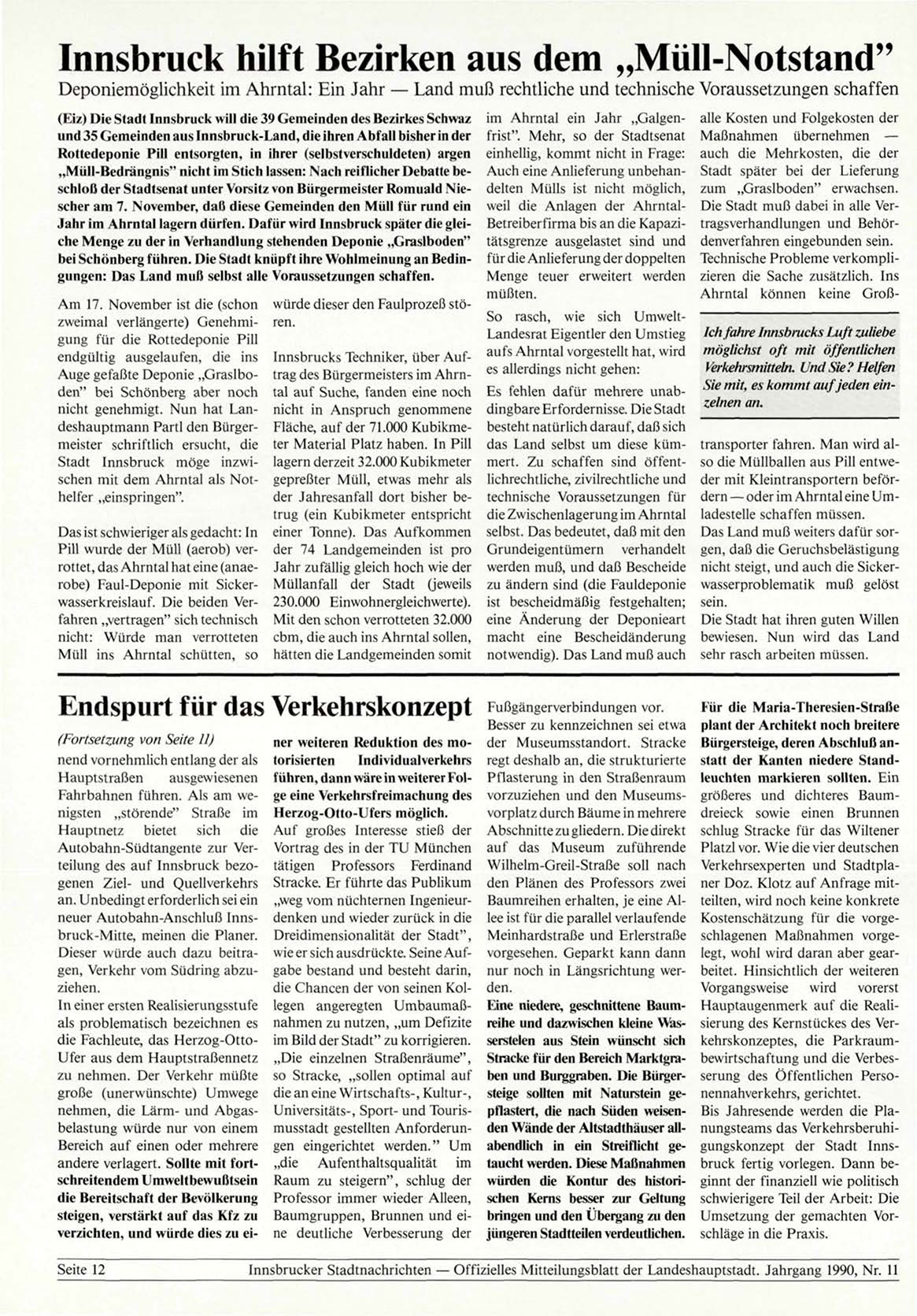 Innsbrucker Stadtnachrichten — Offizielles Mitteilungsblatt der Landeshauptstadt. Jahrgang 1990, Nr. 11