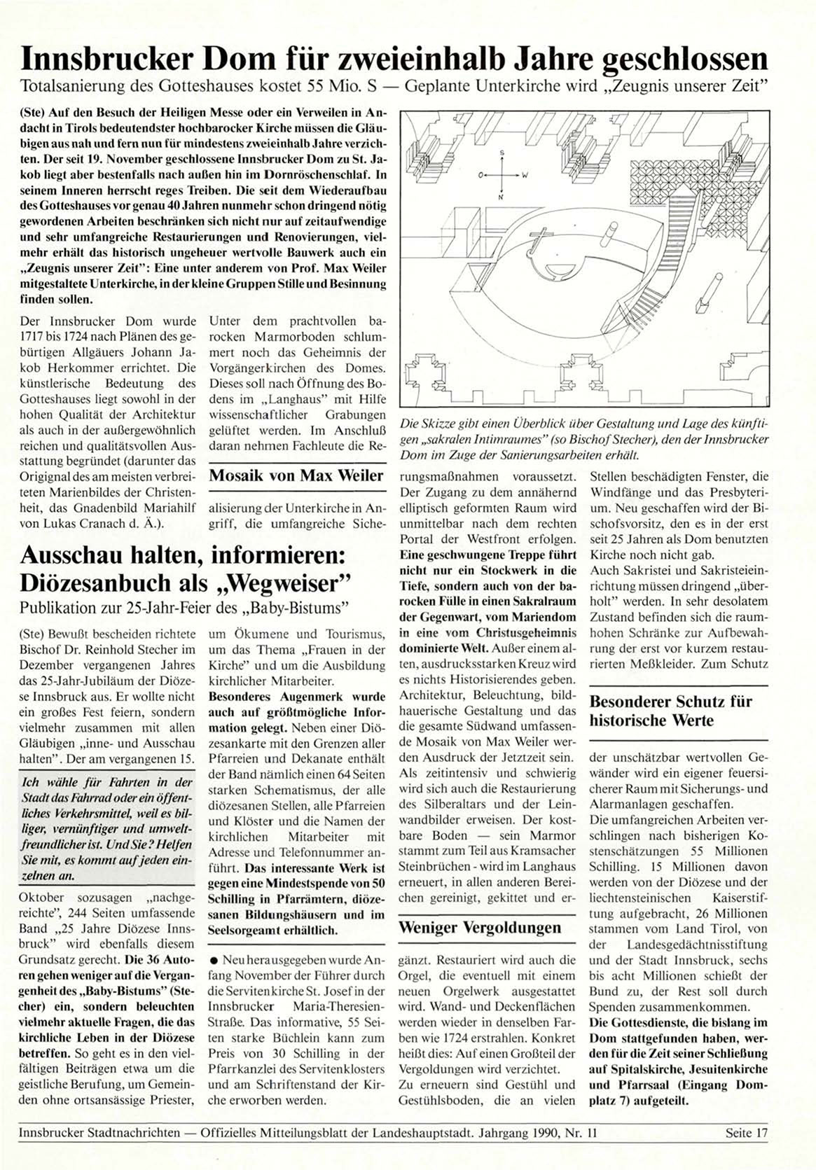 Innsbrucker Stadtnachrichten — Offizielles Mitteilungsblatt der Landeshauptstadt. Jahrgang 1990, Nr. 11