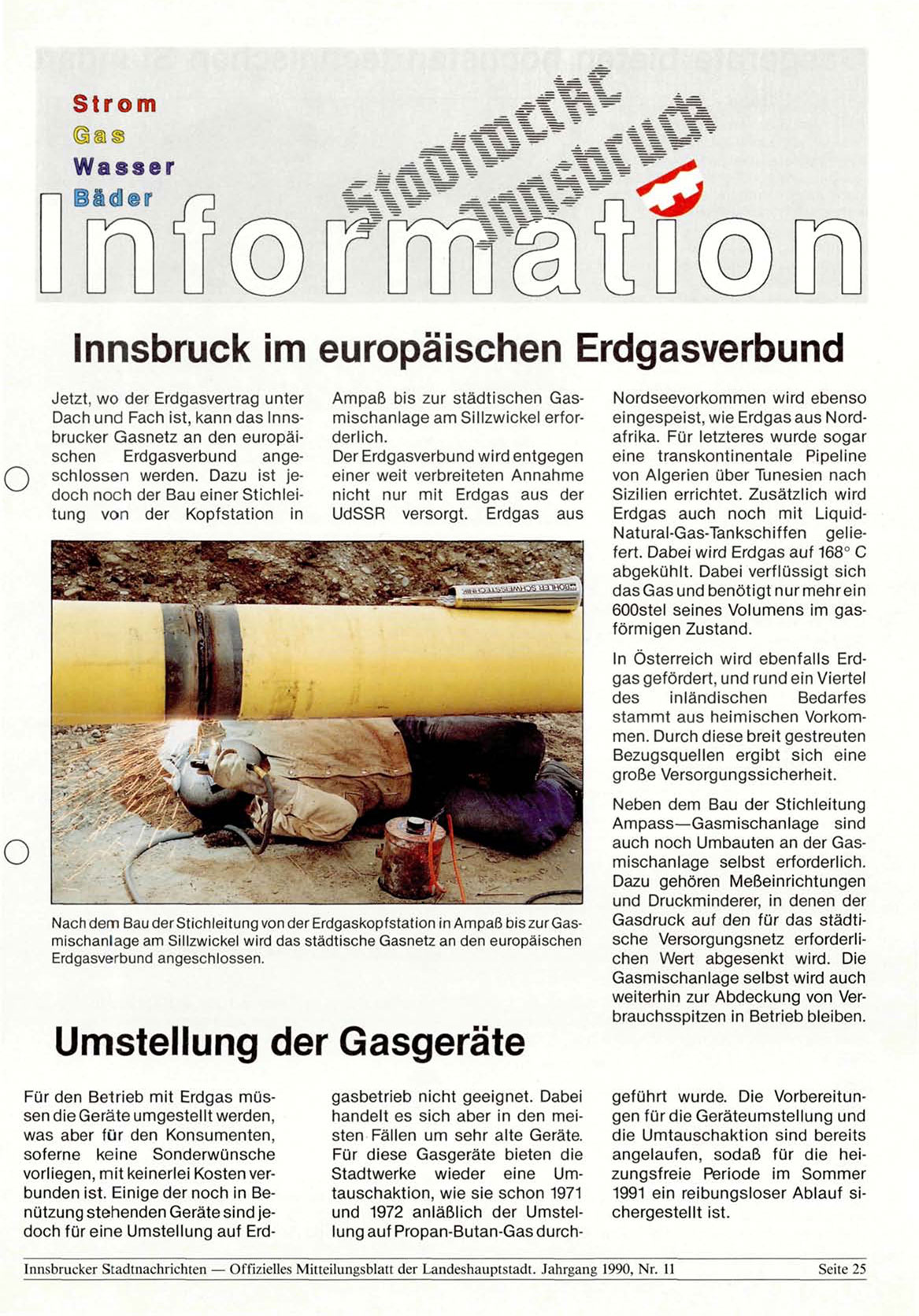 Innsbrucker Stadtnachrichten — Offizielles Mitteilungsblatt der Landeshauptstadt. Jahrgang 1990, Nr. 11