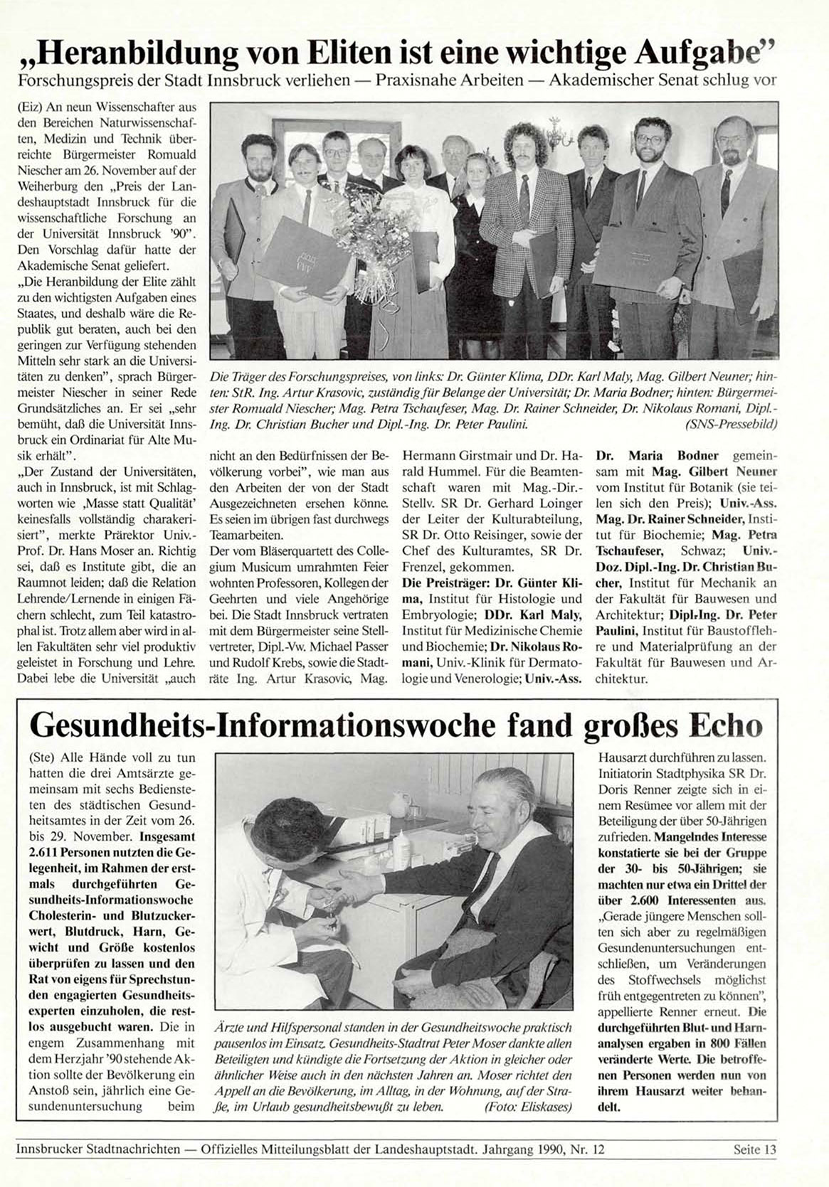 Innsbrucker Stadtnachrichten — Offizielles Mitteilungsblatt der Landeshauptstadt. Jahrgang 1990, Nr. 12
