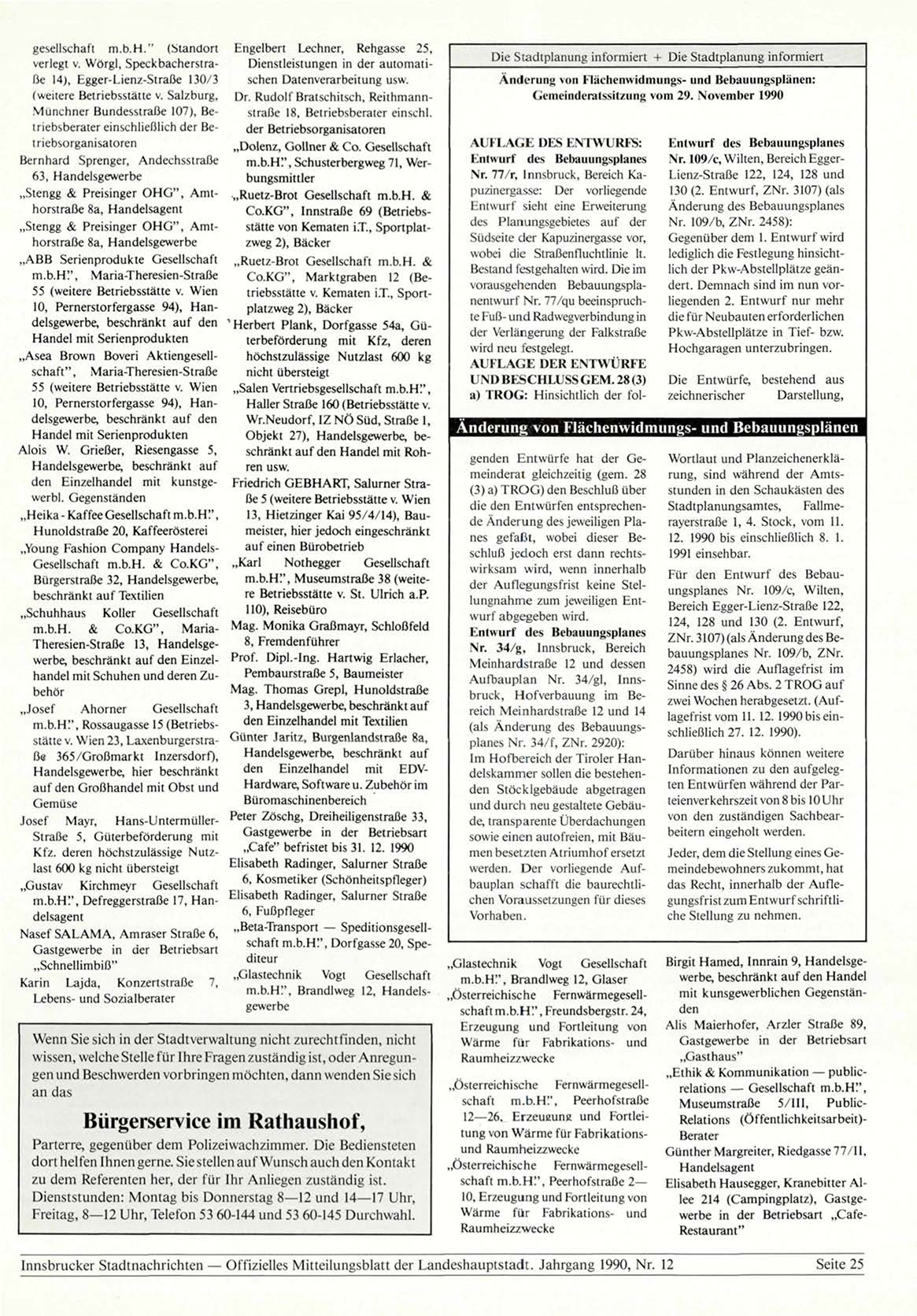Innsbrucker Stadtnachrichten — Offizielles Mitteilungsblatt der Landeshauptstadt. Jahrgang 1990, Nr. 12