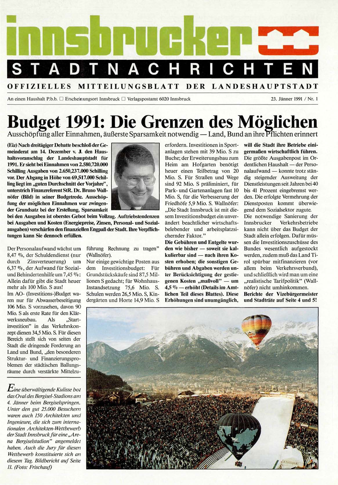 Friedhöfe 5,9 Mio. S. Wallnöfer: Dienstposten kommt überwie„Die Stadt Innsbruck ist mit die- gend dem Sozialsektor zugute.