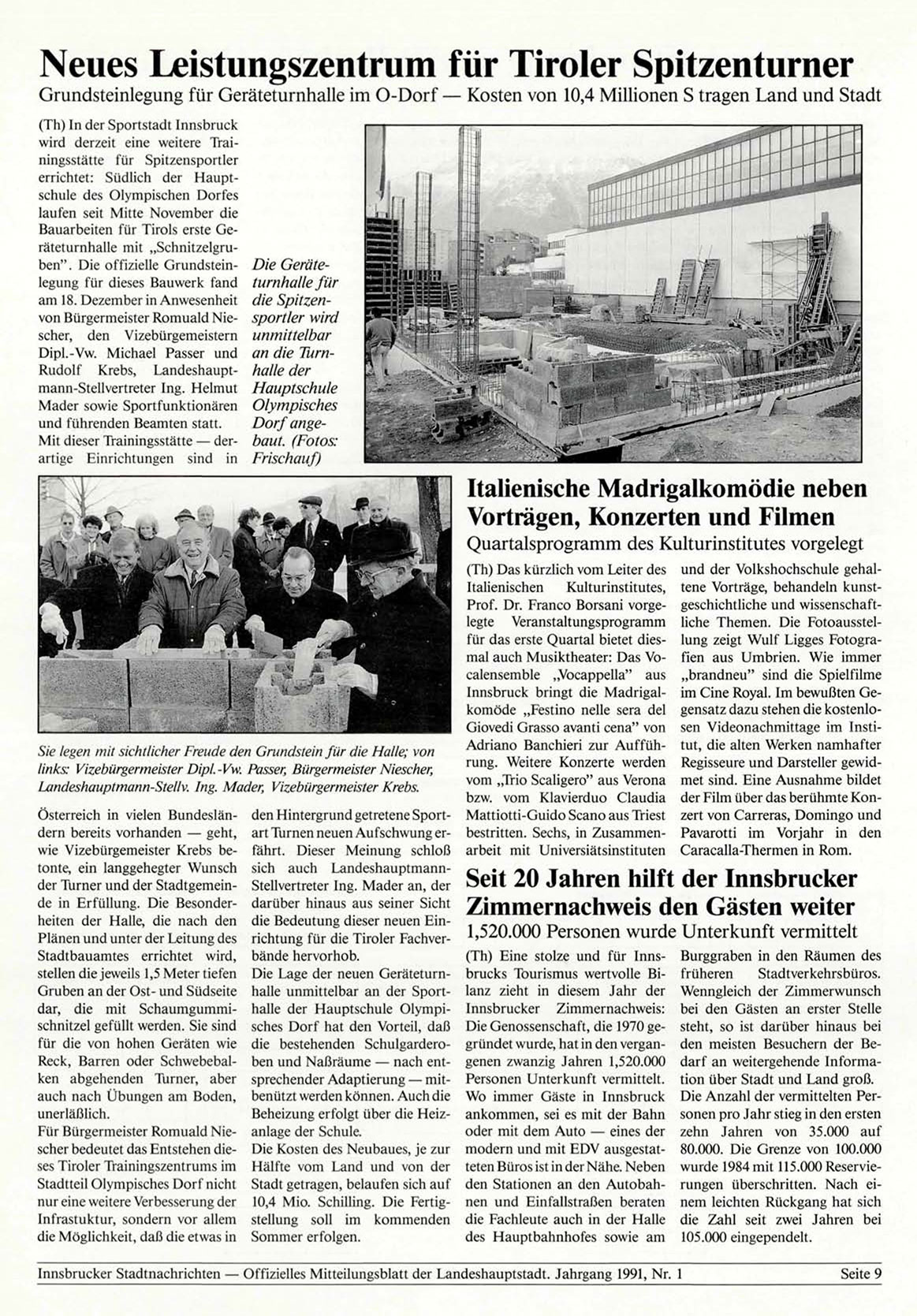 Innsbrucker Stadtnachrichten — Offizielles Mitteilungsblatt der Landeshauptstadt. Jahrgang 1991, Nr. 1