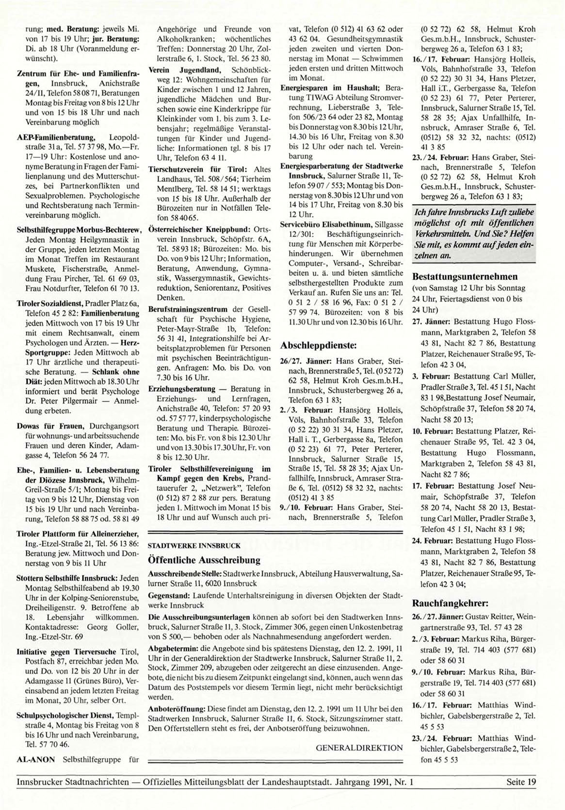 Innsbrucker Stadtnachrichten — Offizielles Mitteilungsblatt der Landeshauptstadt. Jahrgang 1991, Nr. 1