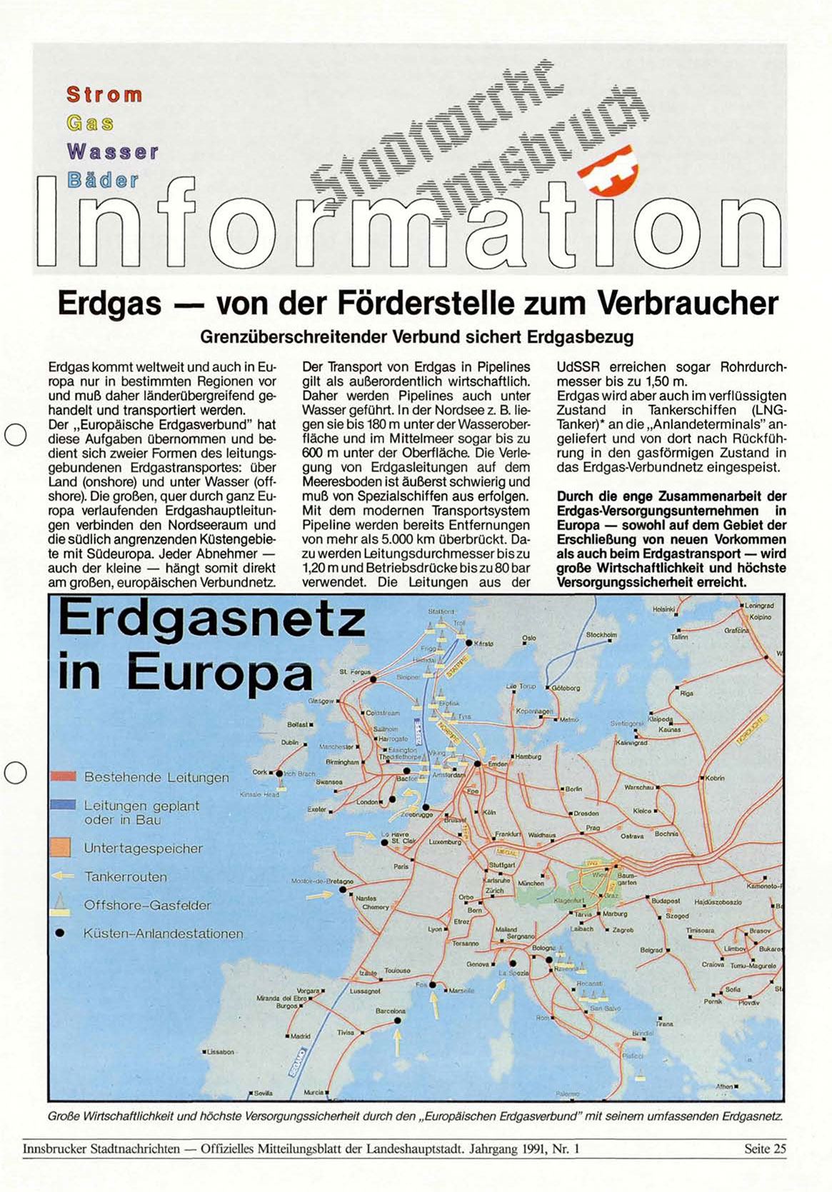 Innsbrucker Stadtnachrichten — Offizielles Mitteilungsblatt der Landeshauptstadt. Jahrgang 1991, Nr. 1