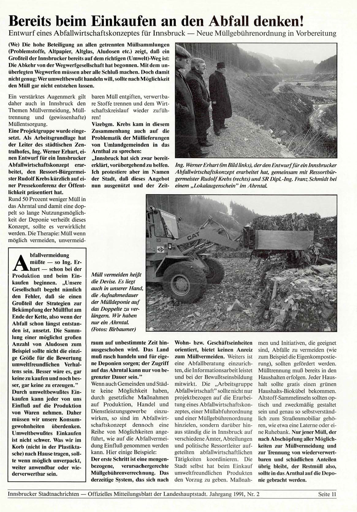 Innsbrucker Stadtnachrichten — Offizielles Mitteilungsblatt der Landeshauptstadt. Jahrgang 1991, Nr. 2