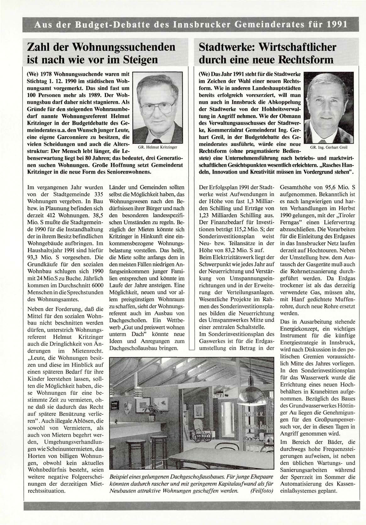 Aus der Budget-Debatte des Innsbrucker Gemeinderates für 1991