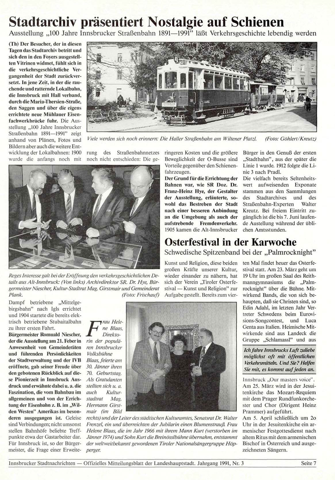 Innsbrucker Stadtnachrichten — Offizielles Mitteilungsblatt der Landeshauptstadt. Jahrgang 1991, Nr. 3