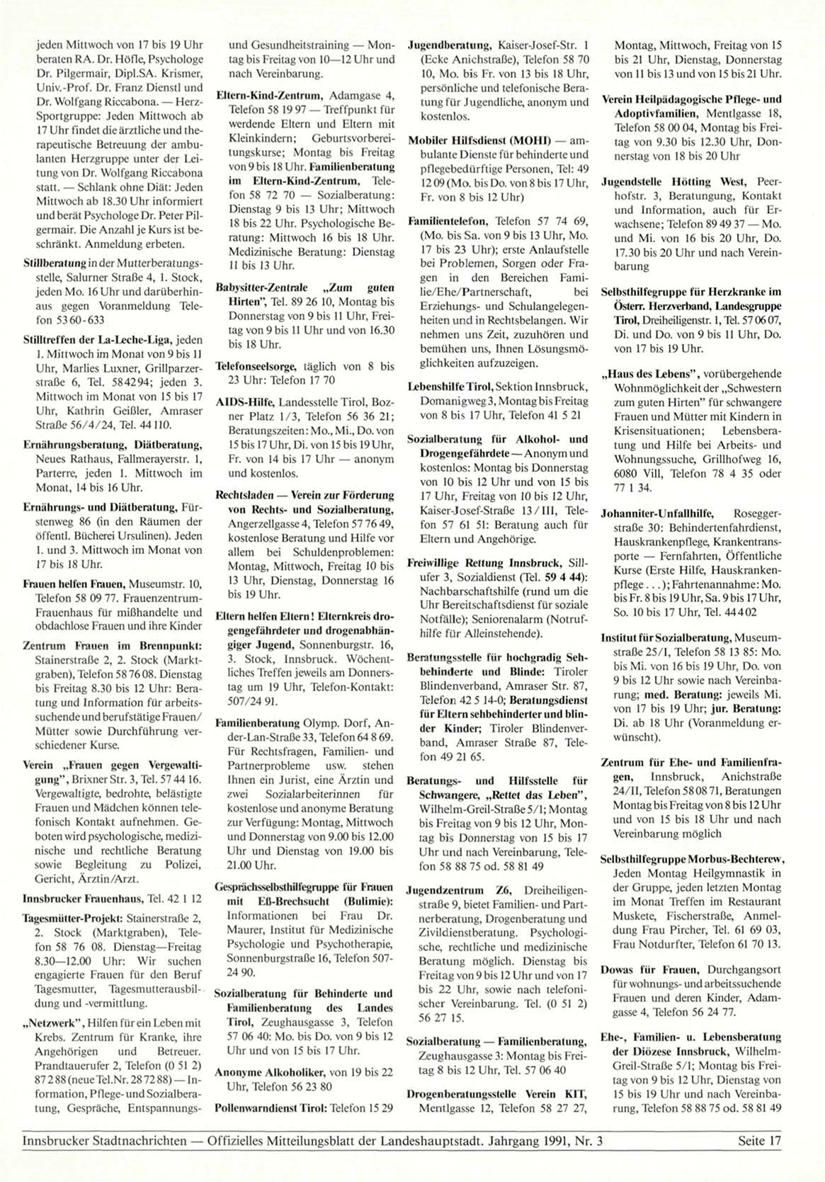 Innsbrucker Stadtnachrichten — Offizielles Mitteilungsblatt der Landeshauptstadt. Jahrgang 1991, Nr. 3