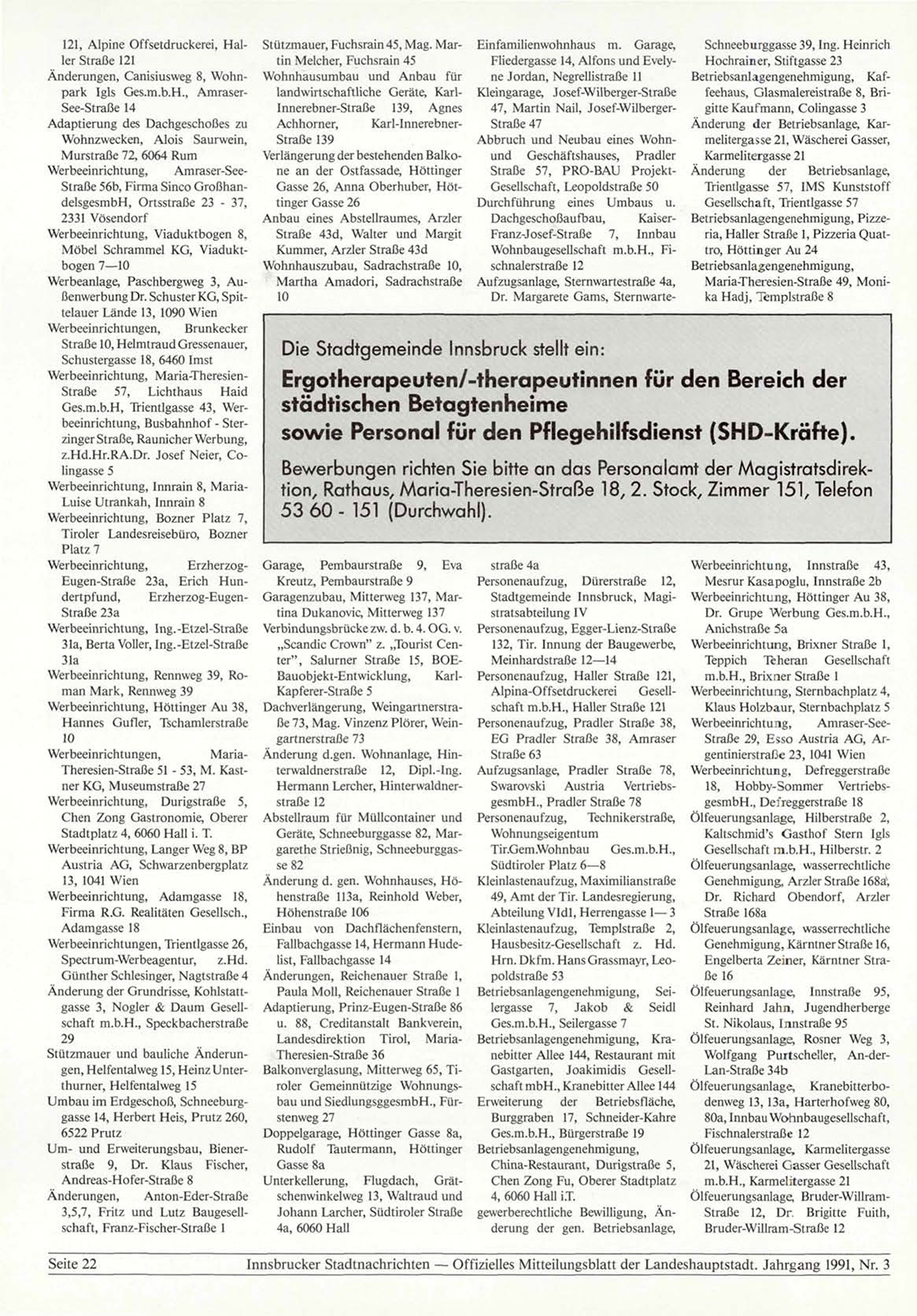 Innsbrucker Stadtnachrichten — Offizielles Mitteilungsblatt der Landeshauptstadt. Jahrgang 1991, Nr. 3