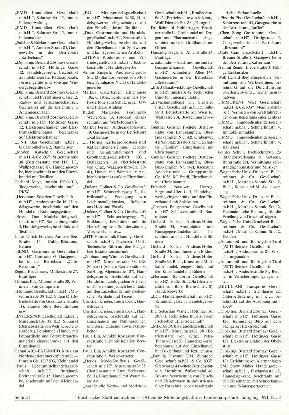Innsbrucker Stadtnachrichten — Offizielles Mitteilungsblatt der Landeshauptstadt. Jahrgang 1991, Nr. 3