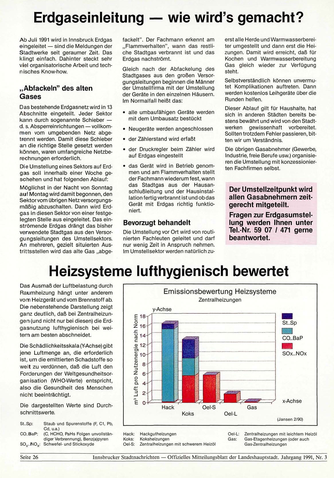 Ab Juli 1991 wird in Innsbruck Erdgas