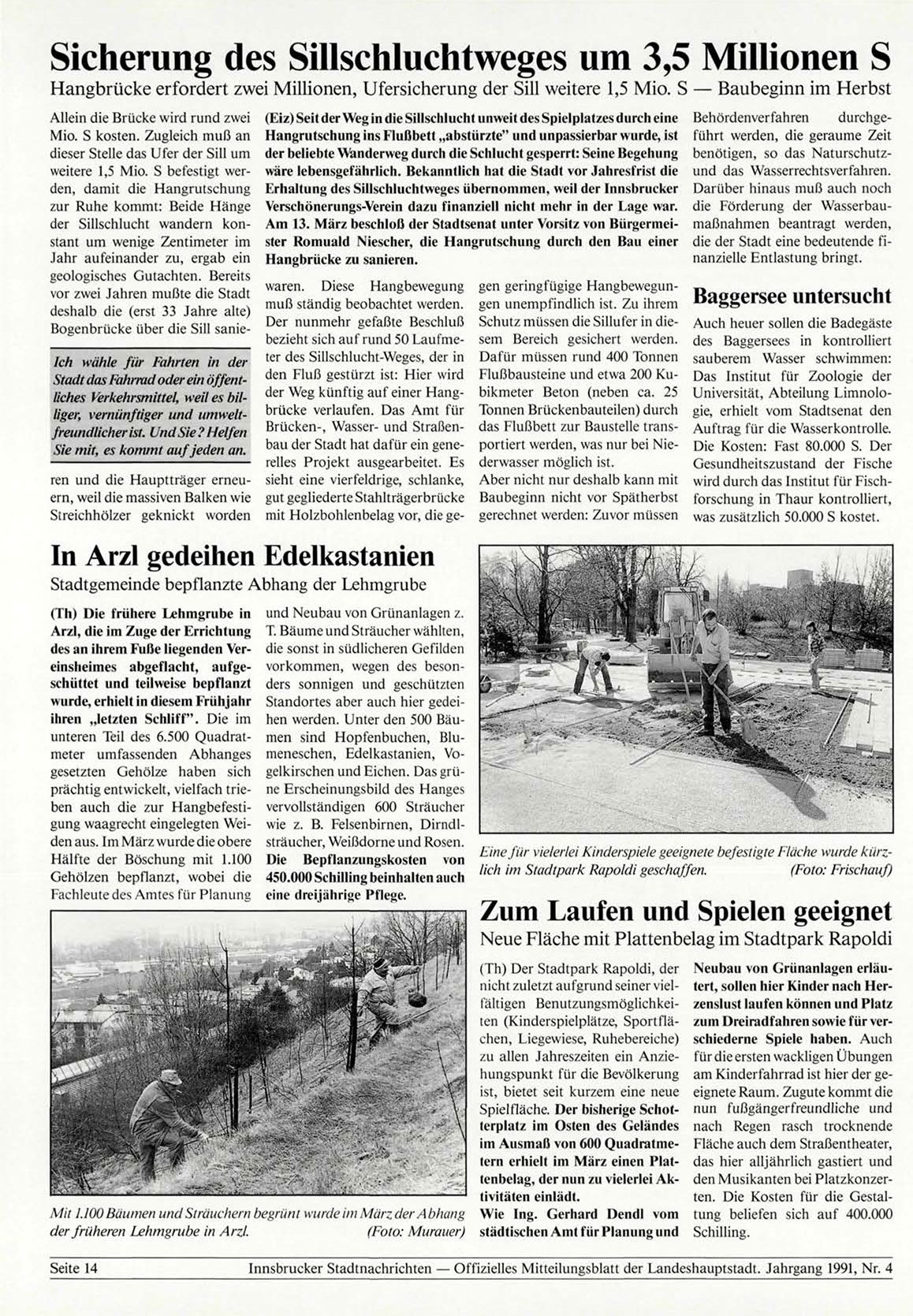 Innsbrucker Stadtnachrichten — Offizielles Mitteilungsblatt der Landeshauptstadt. Jahrgang 1991, Nr. 4