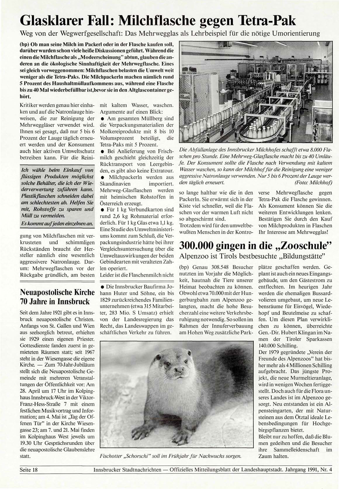 Innsbrucker Stadtnachrichten — Offizielles Mitteilungsblatt der Landeshauptstadt. Jahrgang 1991, Nr. 4