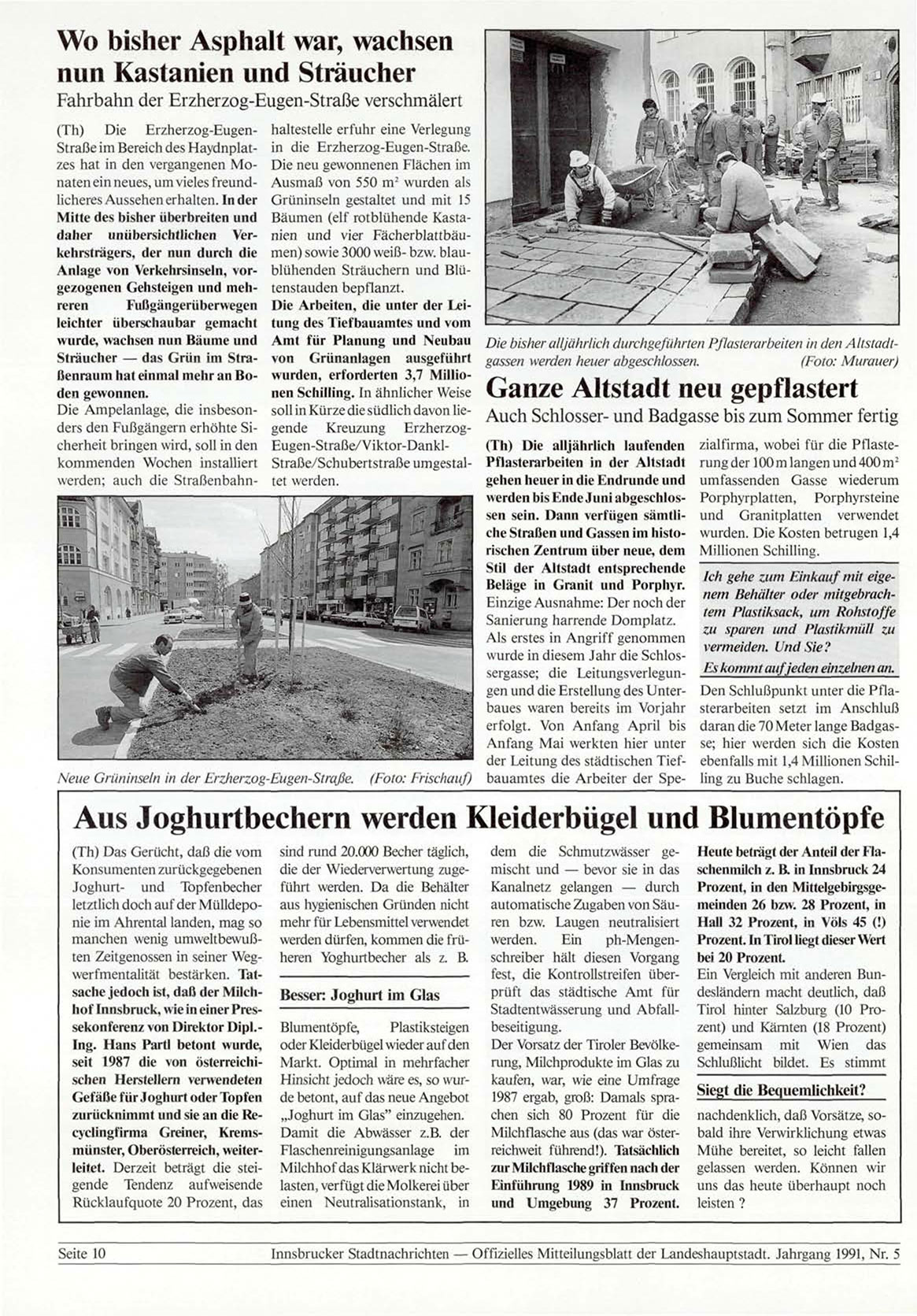 Innsbrucker Stadtnachrichten — Offizielles Mitteilungsblatt der Landeshauptstadt. Jahrgang 1991, Nr. 5