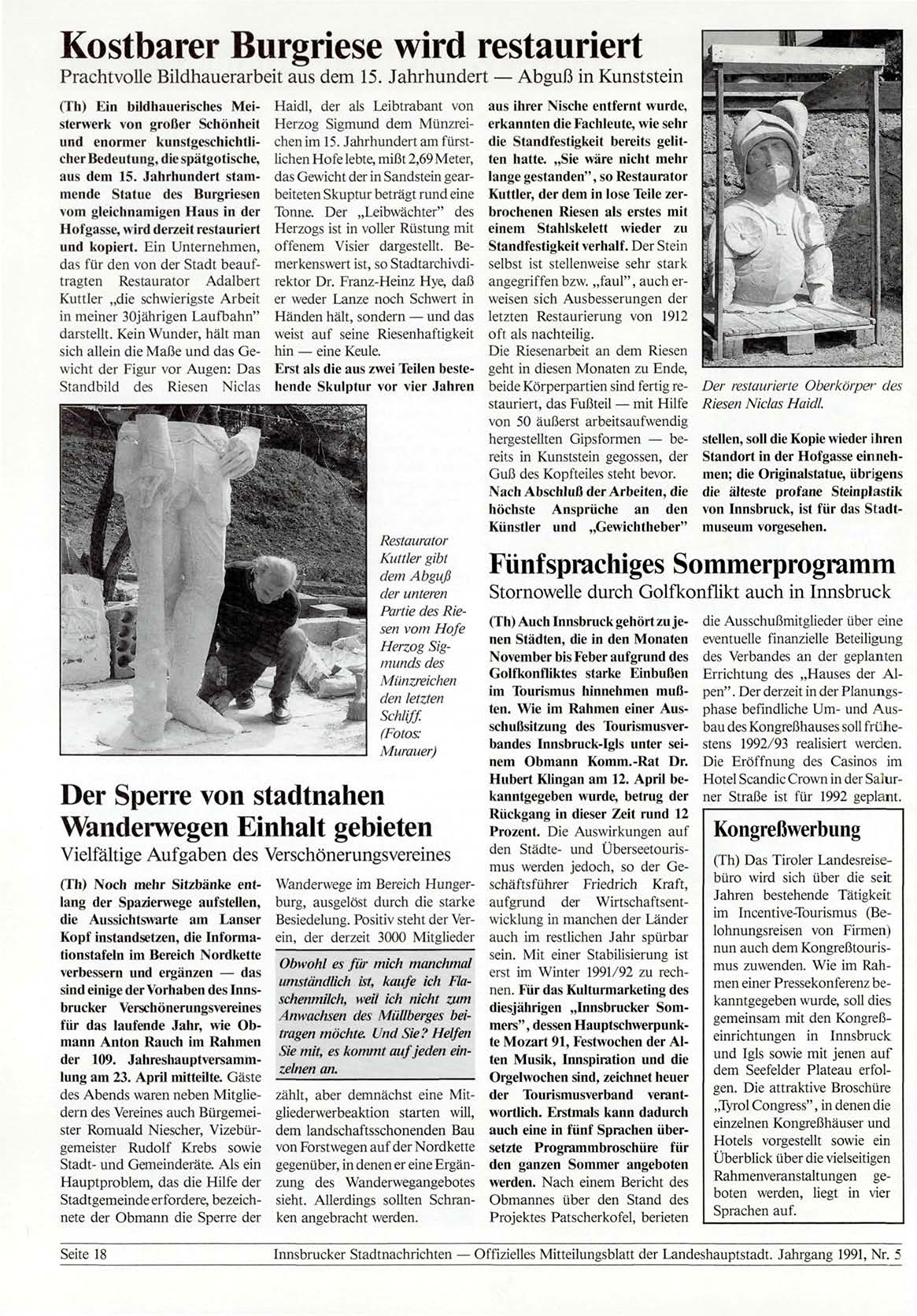 Innsbrucker Stadtnachrichten — Offizielles Mitteilungsblatt der Landeshauptstadt. Jahrgang 1991, Nr. 5