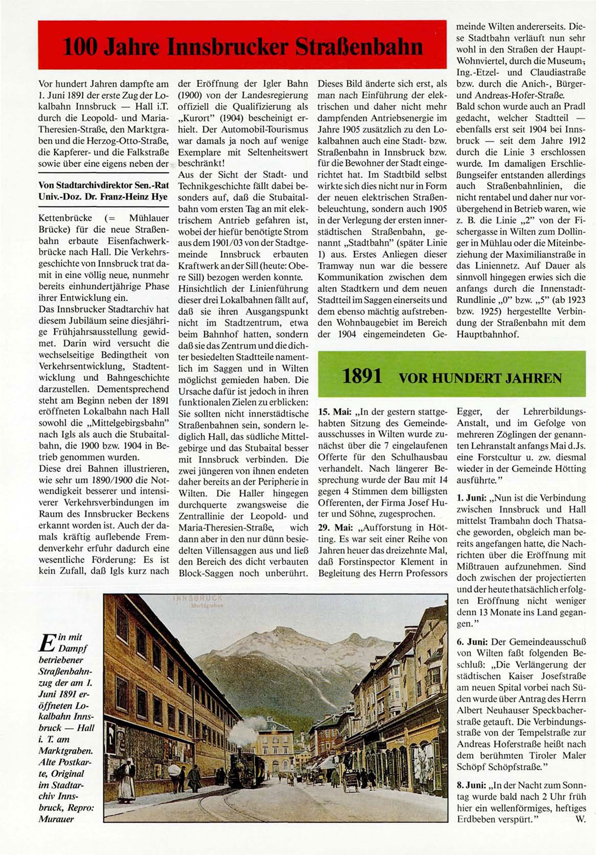 1. Juni 1891 der erste Zug der Lokalbahn Innsbruck — Hall i.T.