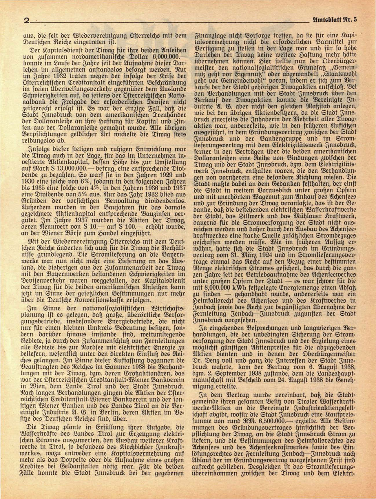 wie bei den übrigen Aktienbesitzern, da die Stadt Innsbruck einerseits die Inhaberin der Mehrheit aller Tiwagaktien war, andererseits, wie in den früheren Aufsätzen