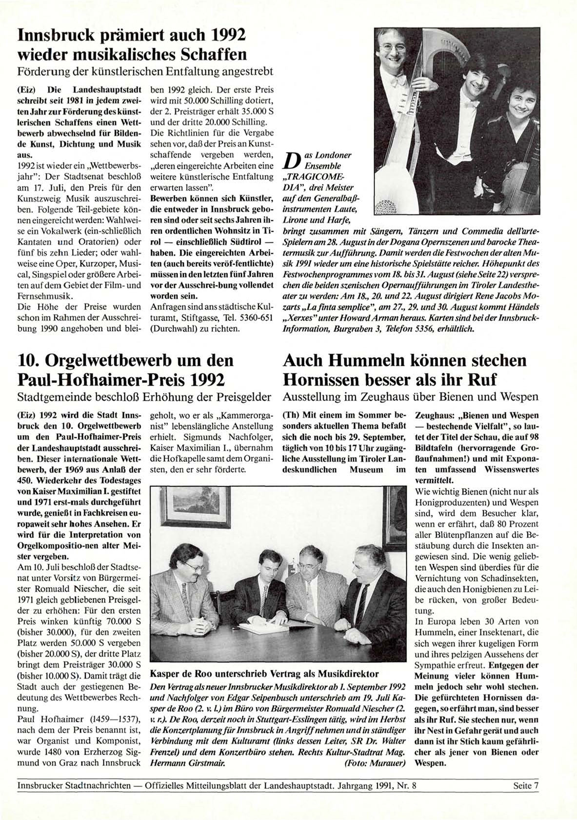 Den Vertrag als neuer Innsbrucker Musikdirektor ab 1. September 1992
