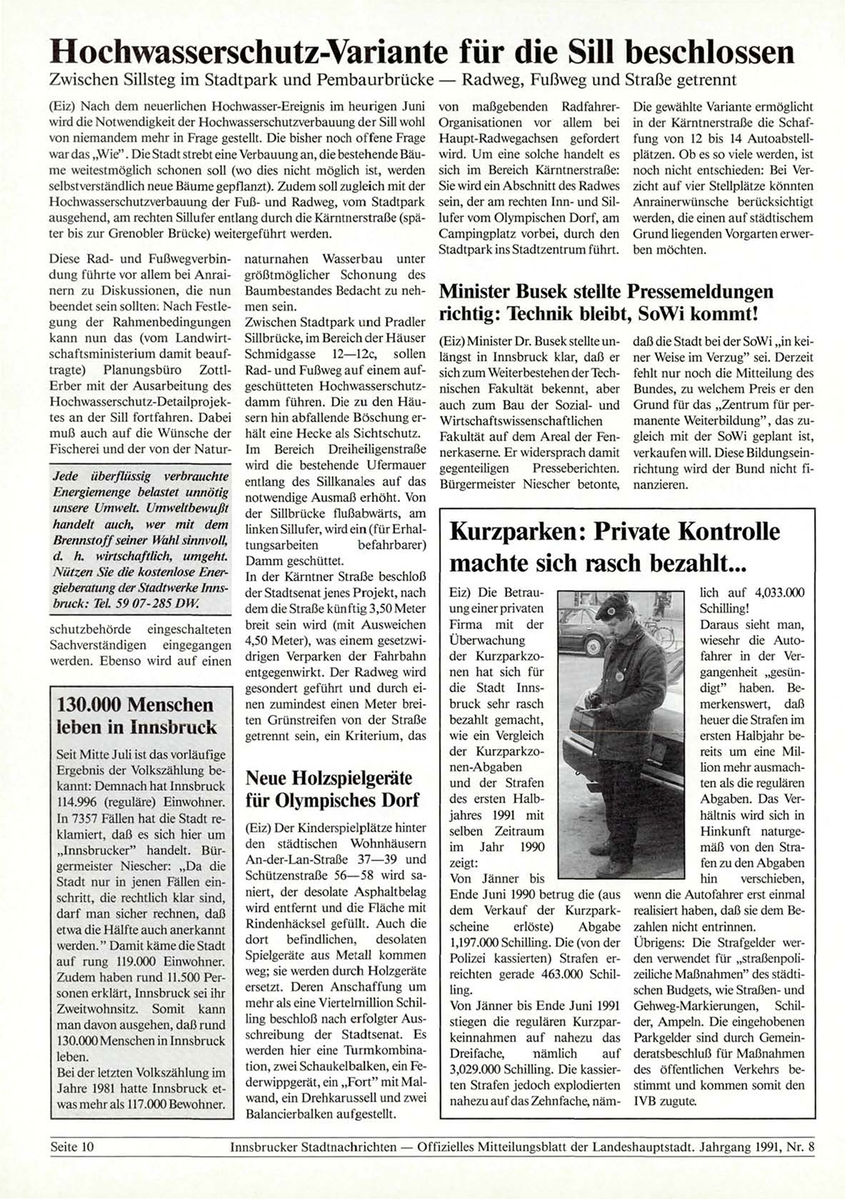 Innsbrucker Stadtnachrichten — Offizielles Mitteilungsblatt der Landeshauptstadt. Jahrgang 1991, Nr. 8