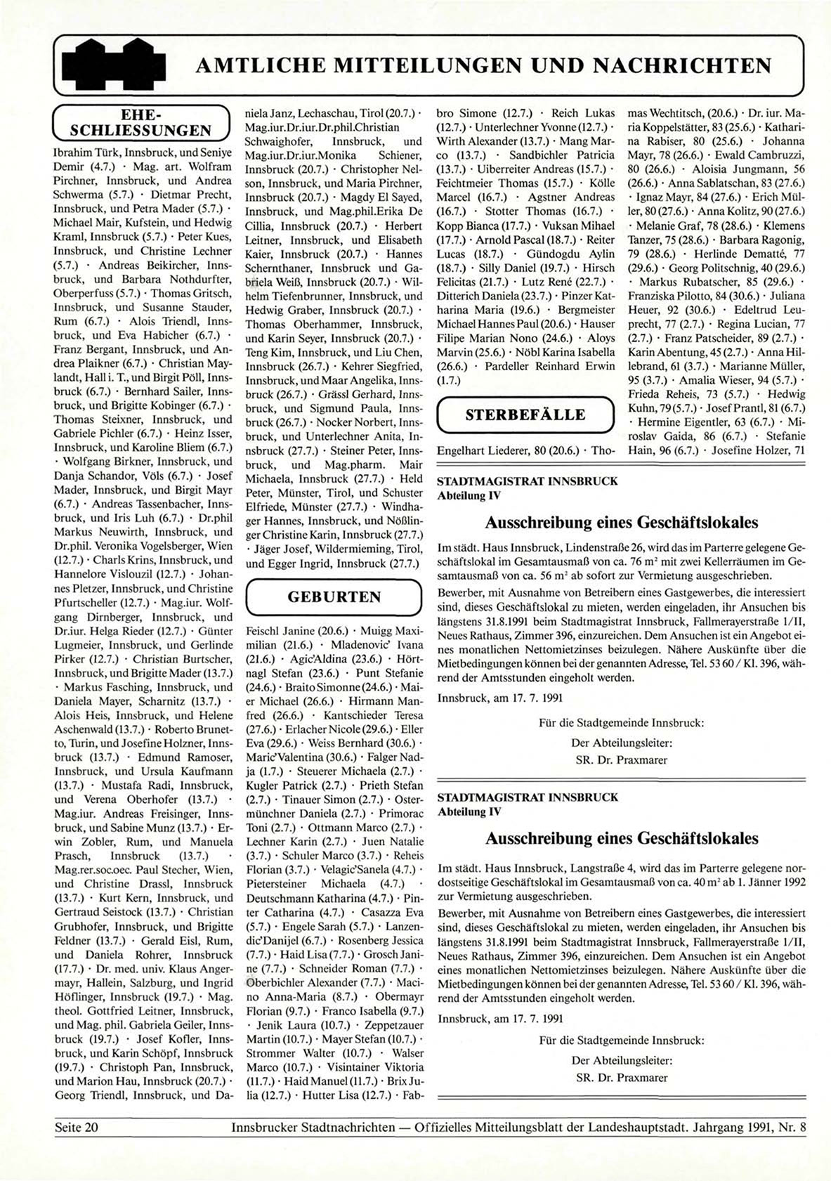 längstens 31.8.1991 beim Stadtmagistrat Innsbruck, Fallmerayerstraße l/II,