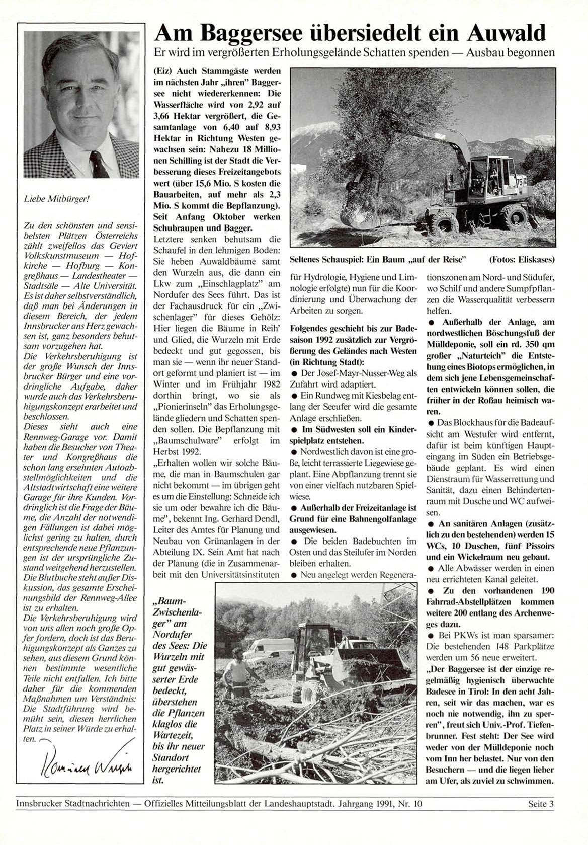 Innsbrucker Stadtnachrichten — Offizielles Mitteilungsblatt der Landeshauptstadt. Jahrgang 1991, Nr. 10