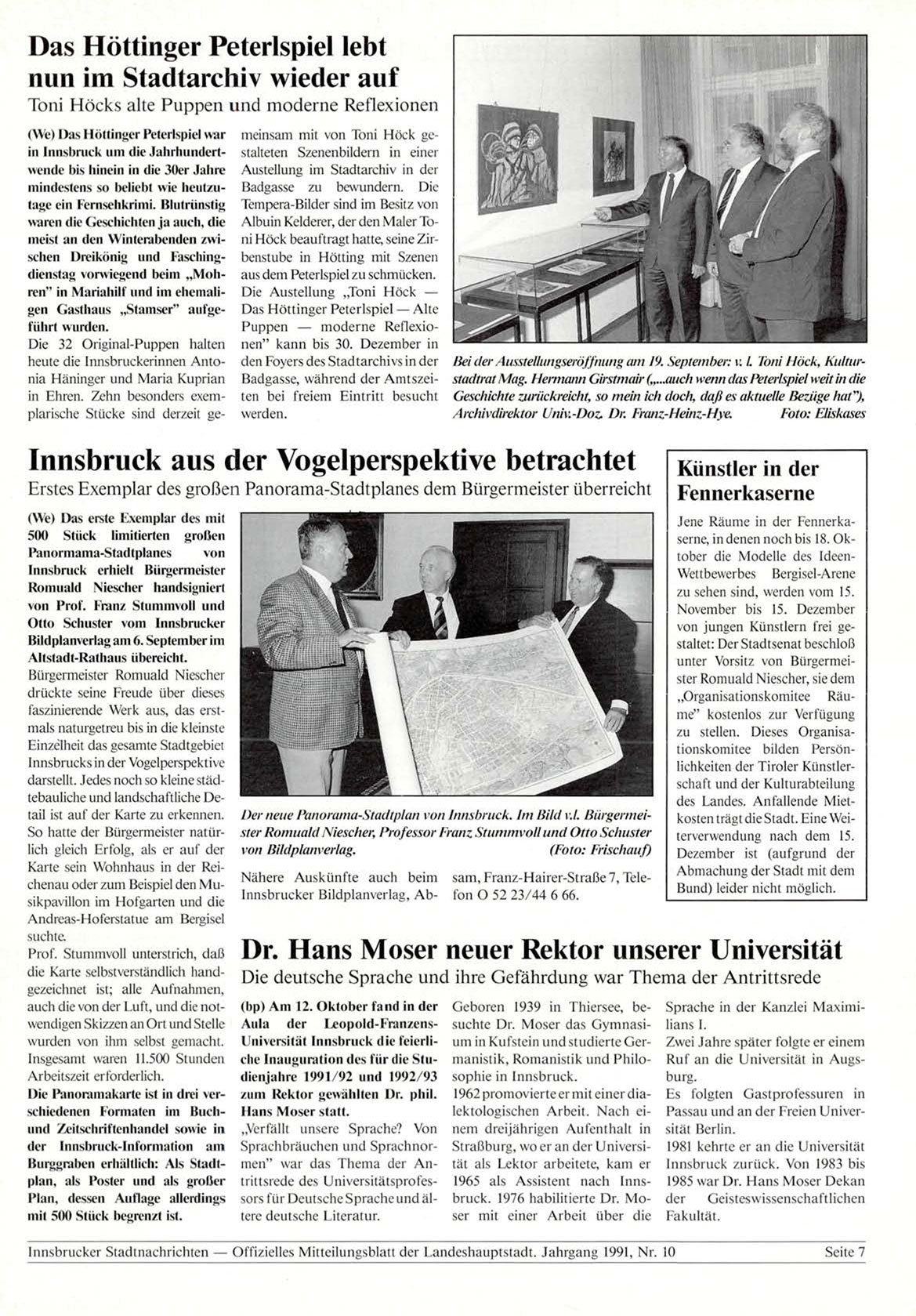Innsbrucker Stadtnachrichten — Offizielles Mitteilungsblatt der Landeshauptstadt. Jahrgang 1991, Nr. 10