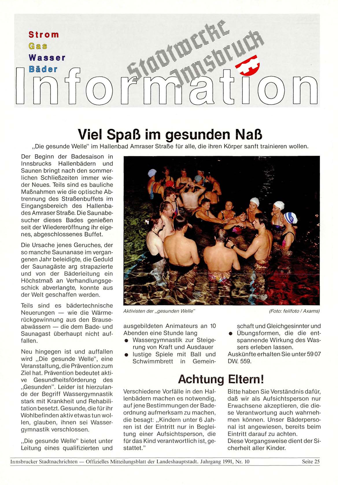 Innsbrucker Stadtnachrichten — Offizielles Mitteilungsblatt der Landeshauptstadt. Jahrgang 1991, Nr. 10