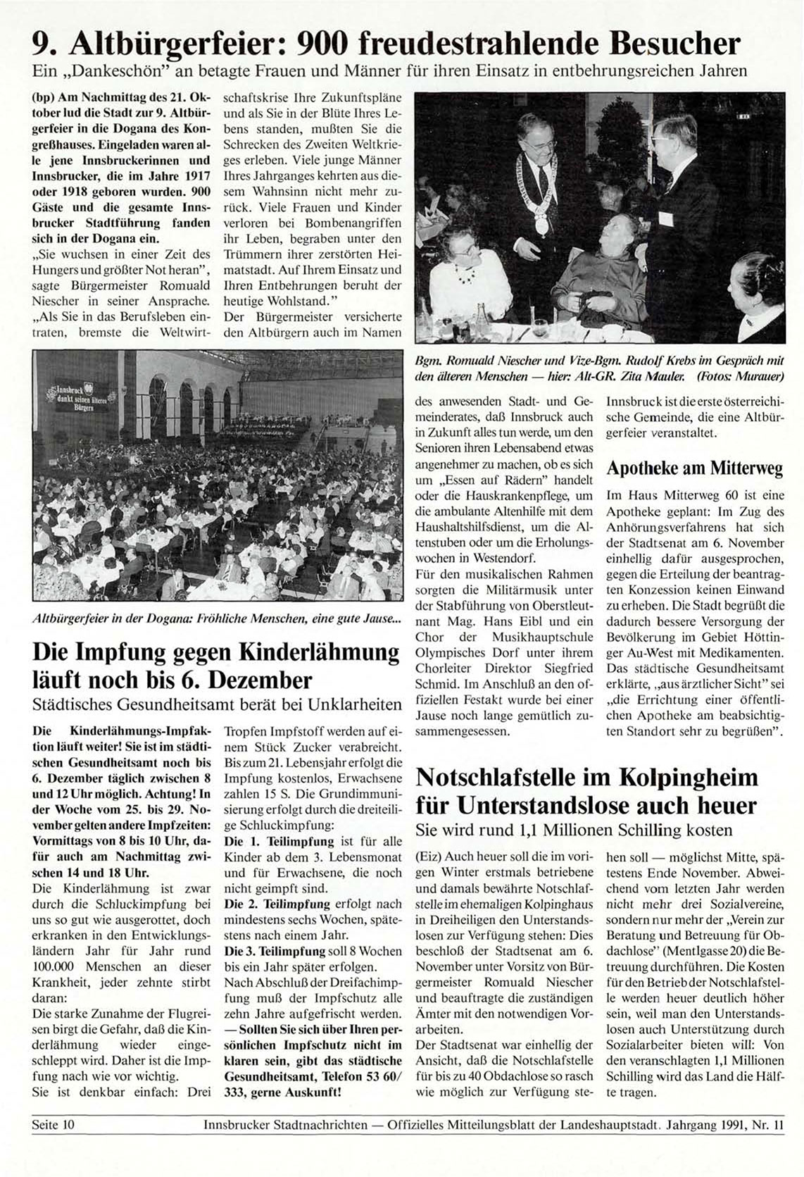 Innsbrucker Stadtnachrichten — Offizielles Mitteilungsblatt der Landeshauptstadt. Jahrgang 1991, Nr. 11