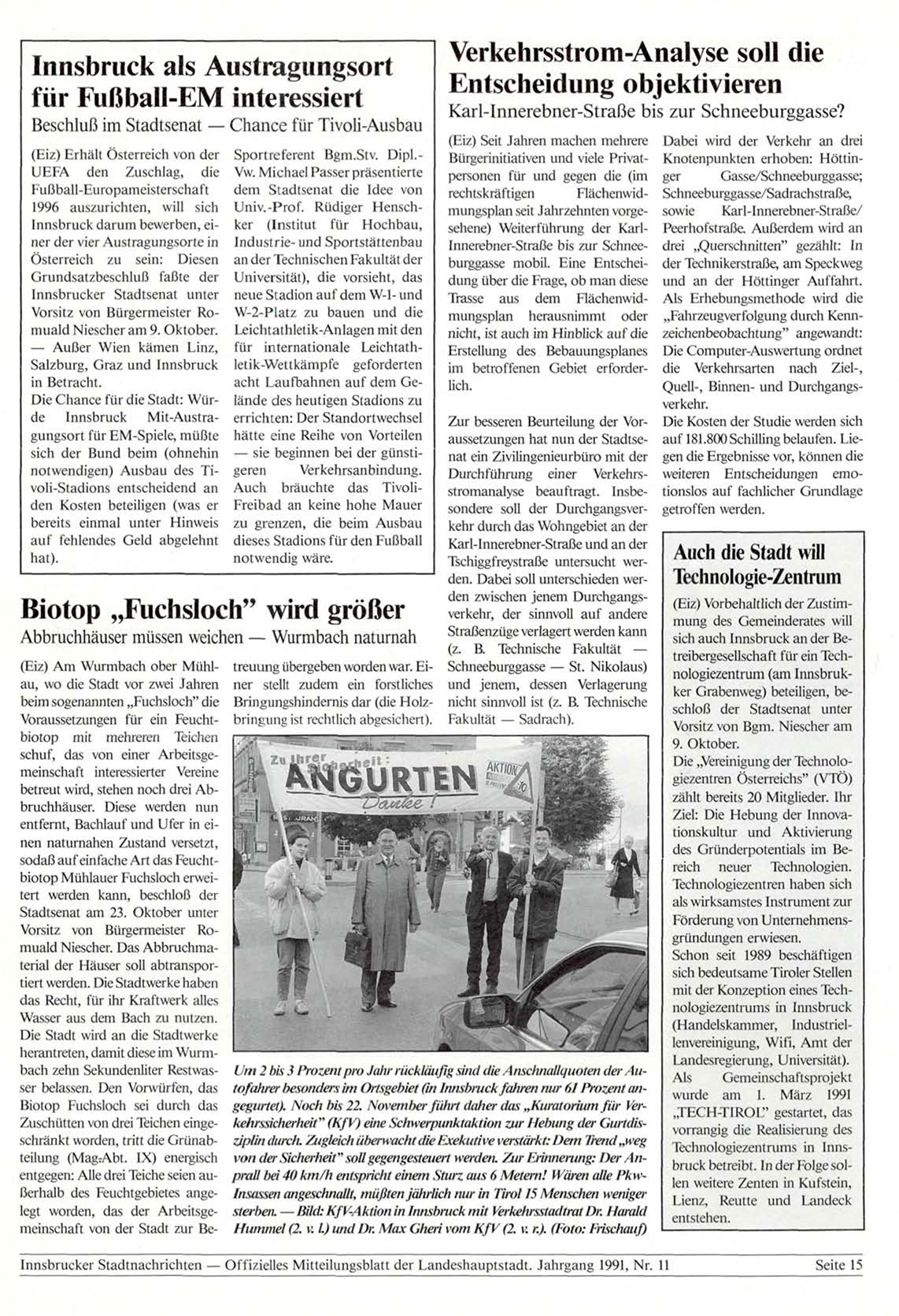 Innsbrucker Stadtnachrichten — Offizielles Mitteilungsblatt der Landeshauptstadt. Jahrgang 1991, Nr. 11