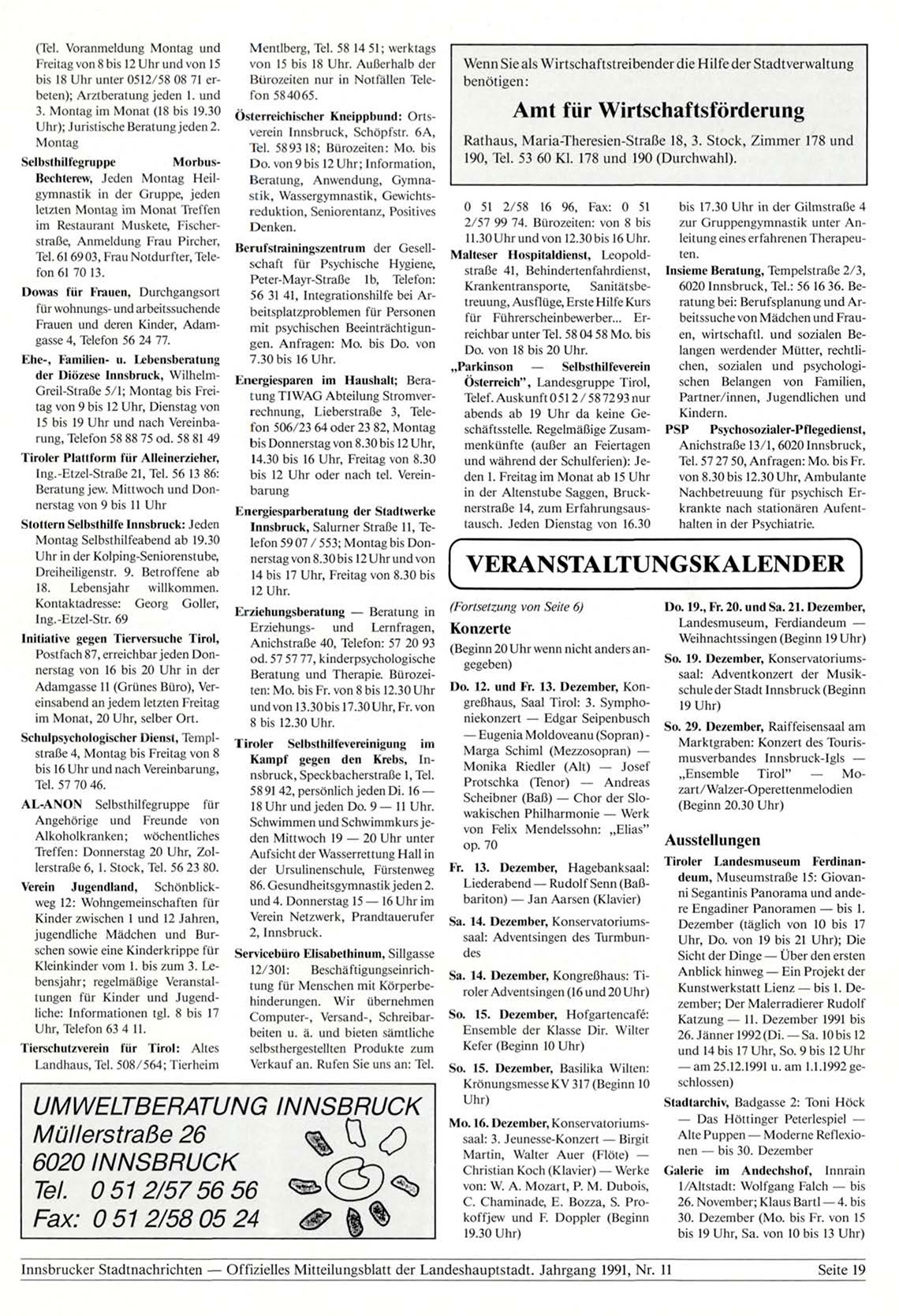Innsbrucker Stadtnachrichten — Offizielles Mitteilungsblatt der Landeshauptstadt. Jahrgang 1991, Nr. 11