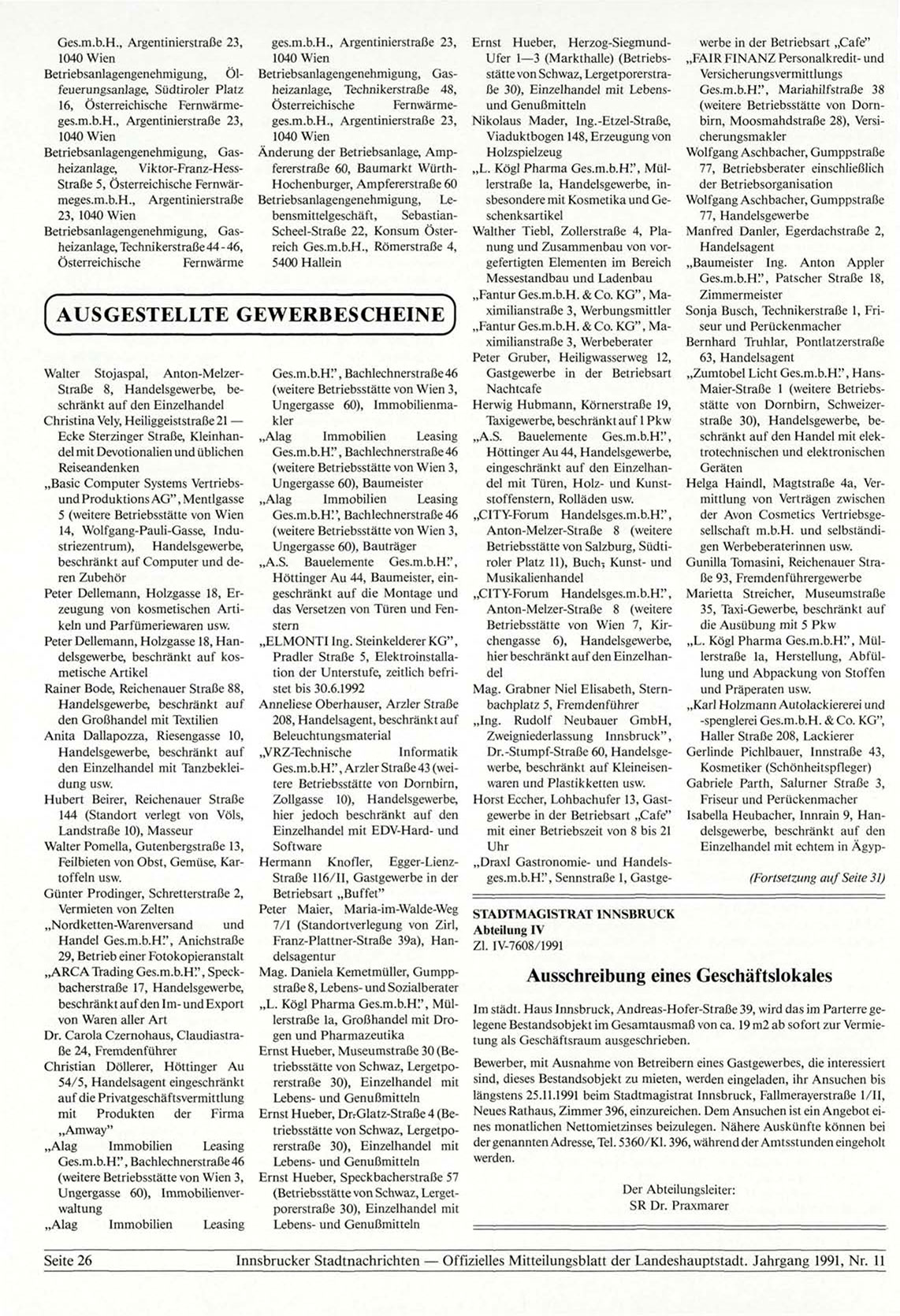 längstens 25.11.1991 beim Stadtmagistrat Innsbruck, Fallmerayerstraße l/II,