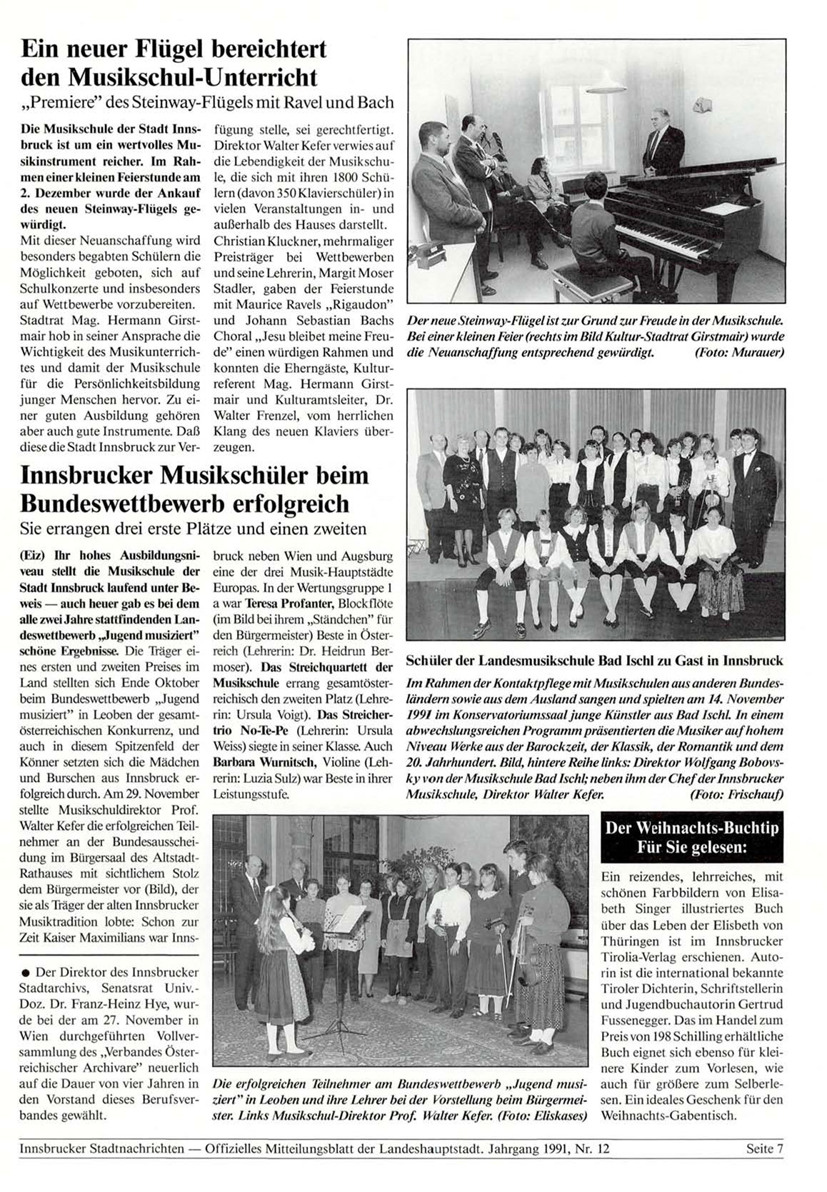 Innsbrucker Stadtnachrichten — Offizielles Mitteilungsblatt der Landeshauptstadt. Jahrgang 1991, Nr. 12