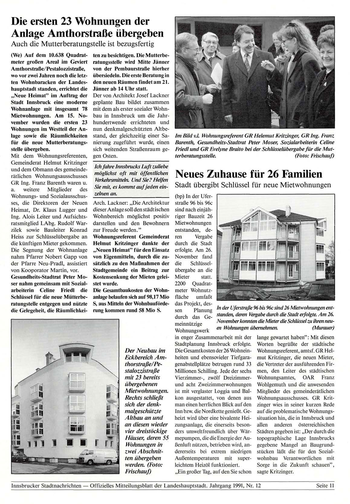 Innsbrucker Stadtnachrichten — Offizielles Mitteilungsblatt der Landeshauptstadt. Jahrgang 1991, Nr. 12