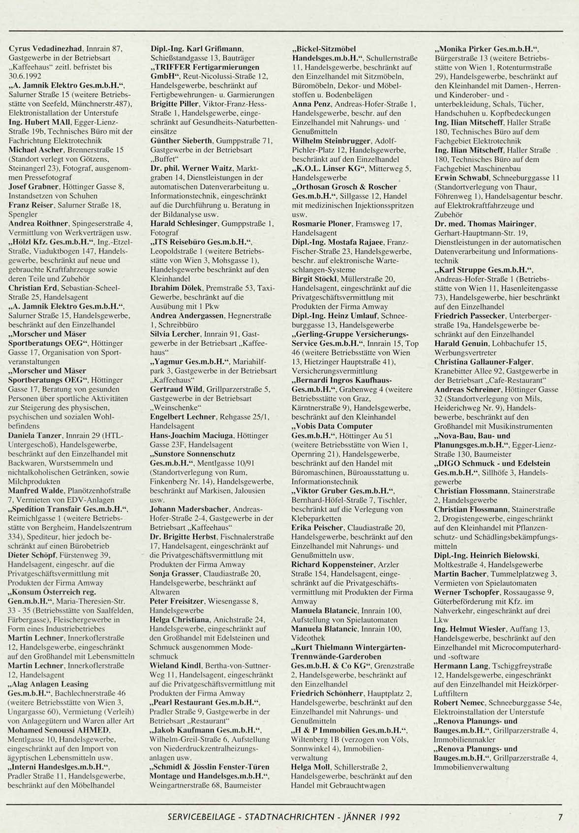 SERVICEBEILAGE - STADTNACHRICHTEN - JÄNNER 1992