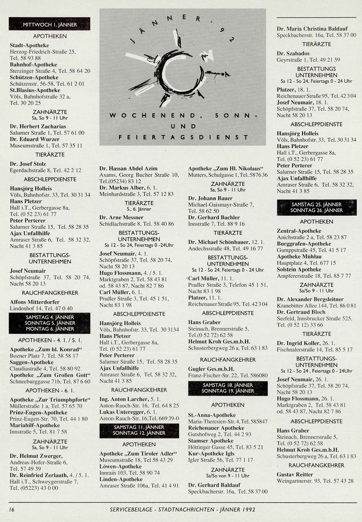 SERVICEBEILAGE - STADTNACHRICHTEN -JÄNNER 1992