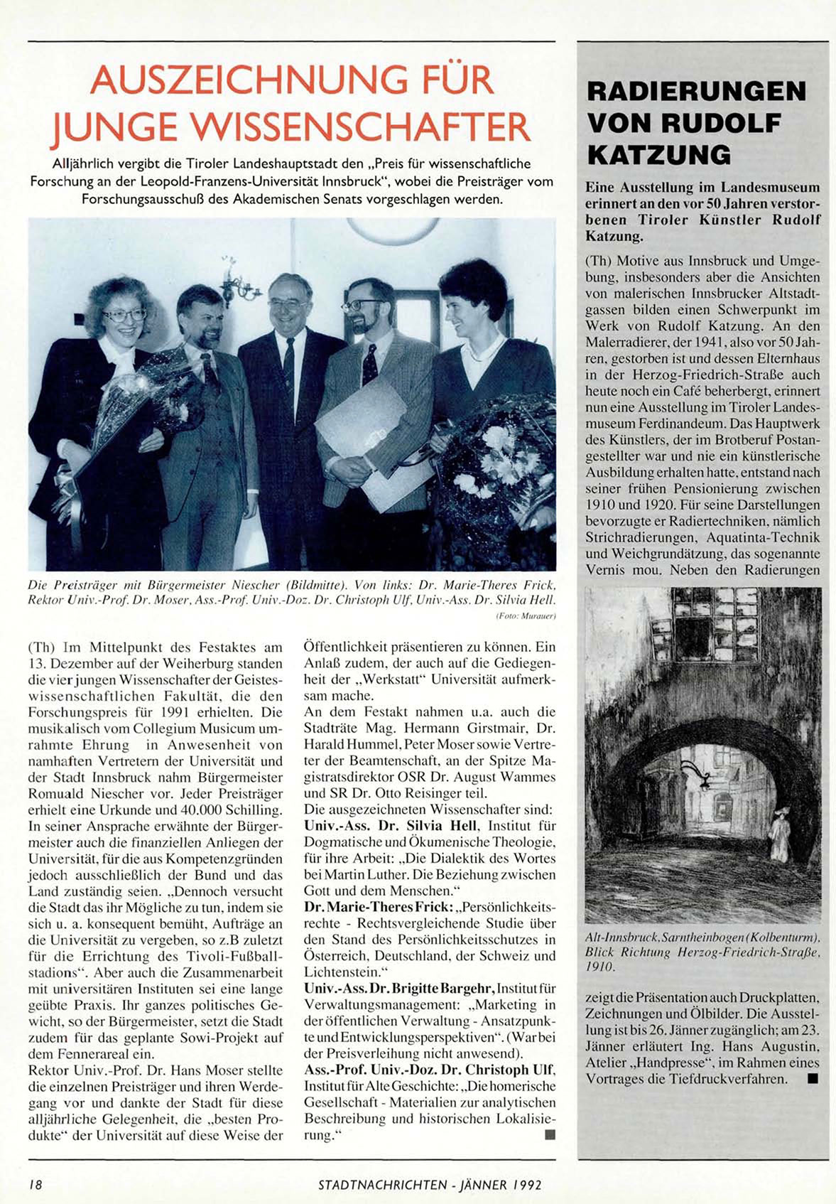 Alljährlich vergibt die Tiroler Landeshauptstadt den „Preis für wissenschaftliche