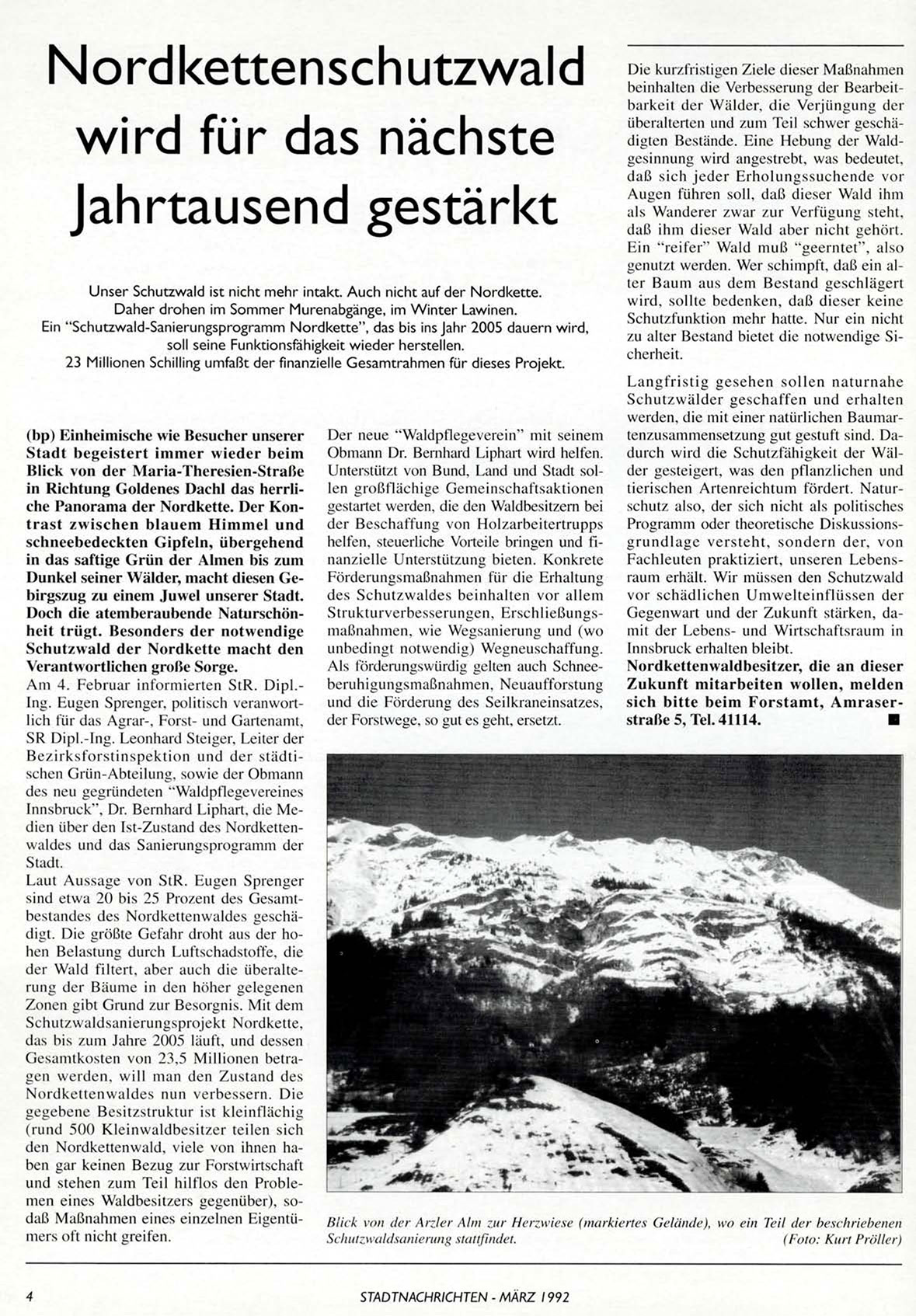 Innsbruck", Dr. Bernhard Liphart, die Medien über den Ist-Zustand des Nordkettenwaldes und das Sanierungsprogramm der
