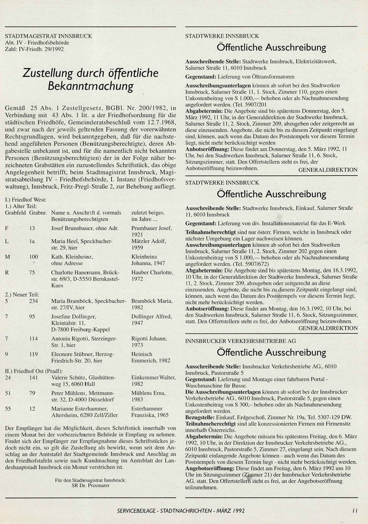 den Friedhofstafeln sowie nach Kundmachung im Amtsblatt der Landeshauptstadt Innsbruck ein Monat verstrichen ist.