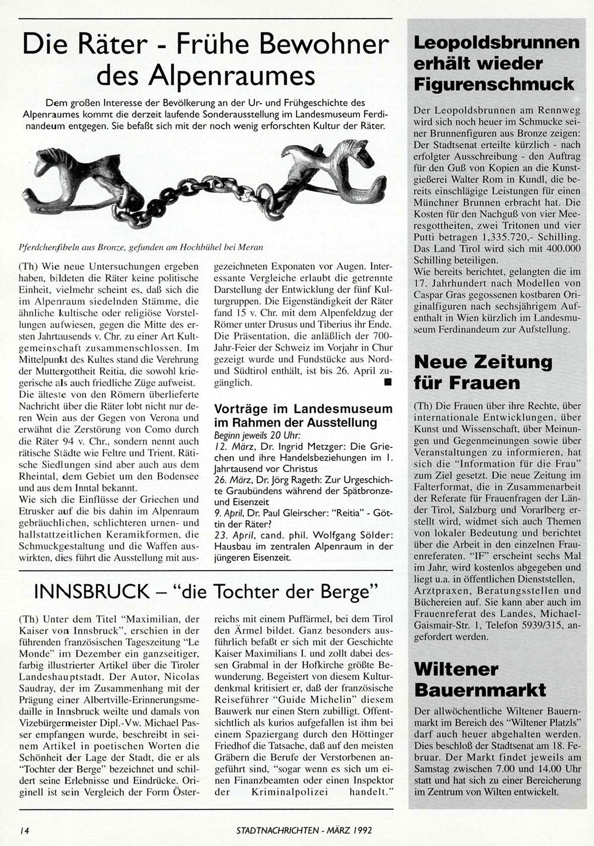 Alpenraumes k o m m t die derzeit laufende Sonderausstellung im Landesmuseum Ferdinandeum entgegen. Sie befaßt sich mit der noch wenig erforschten Kultur der Räter.
