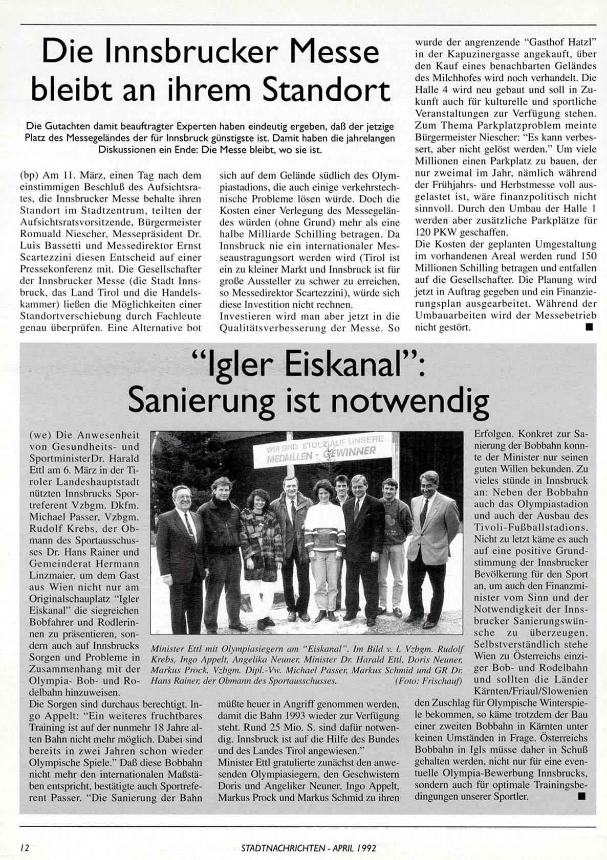 dern auch auf Innsbrucks Minister Etti mit Olympiasiegern am "Eiskanal ". Im Bild v. I. Vzbgm. Rudolf
