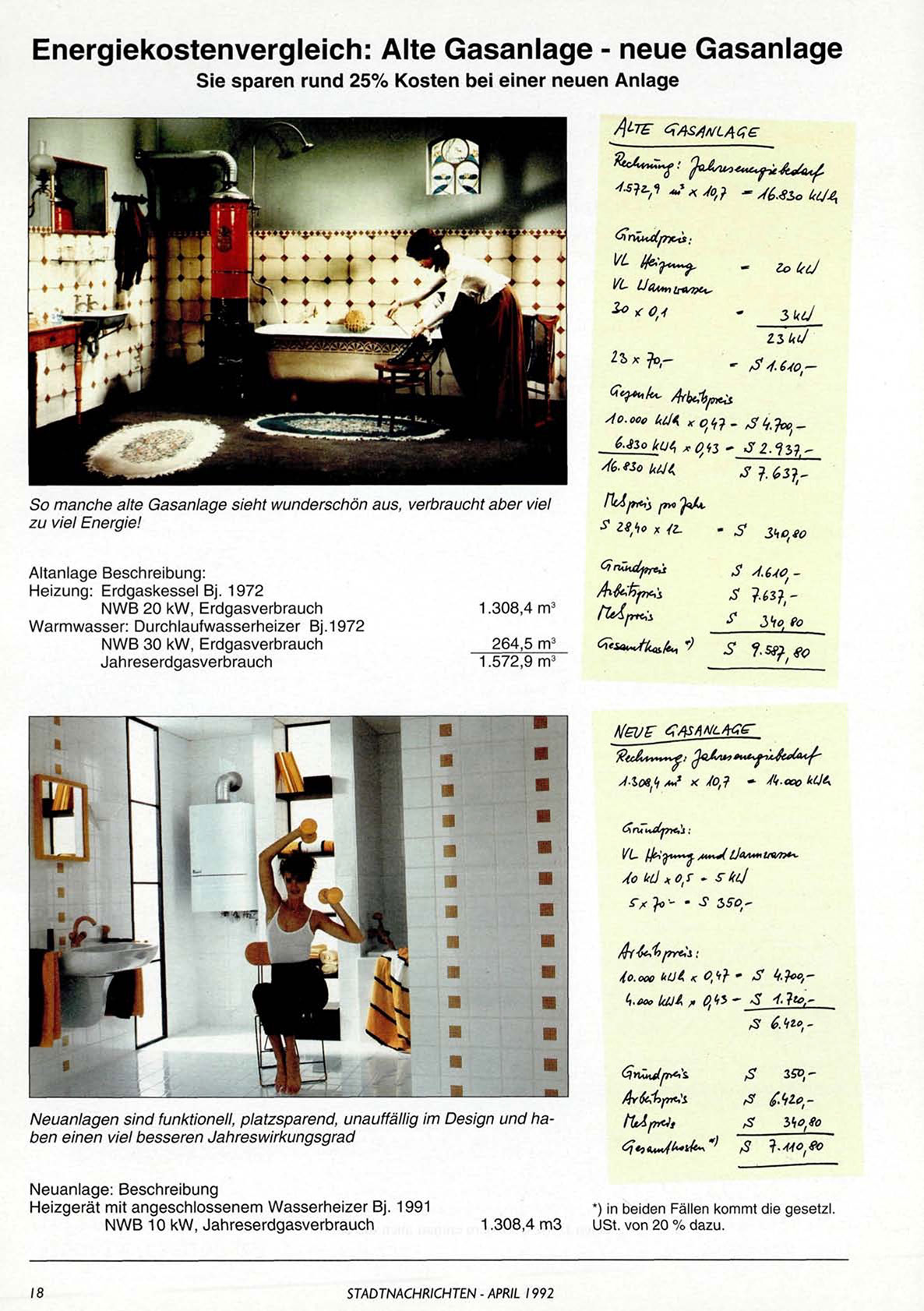 Energiekostenvergleich: Alte Gasanlage - neue Gasanlage