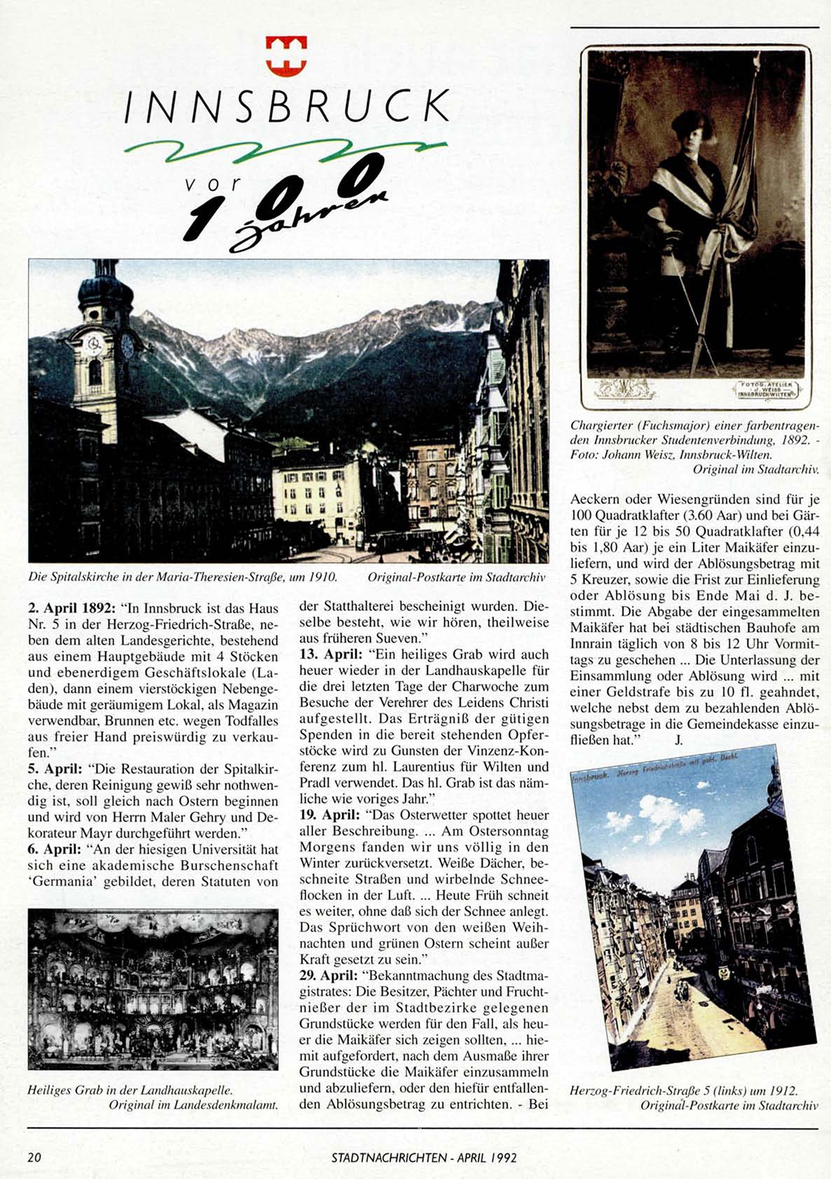 5. April: "Die Restauration der Spitalkirche, deren Reinigung gewiß sehr nothwendig ist, soll gleich nach Ostern beginnen