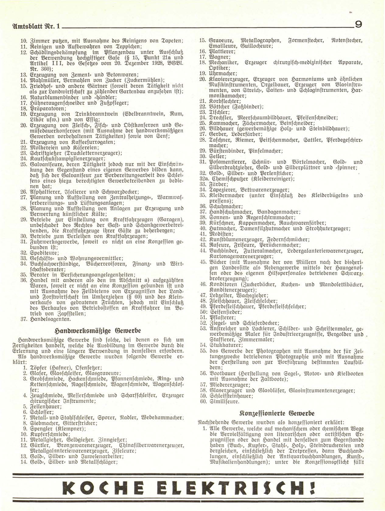 Nachstehende Gewerbe wurden als konzessioniert erklärt: