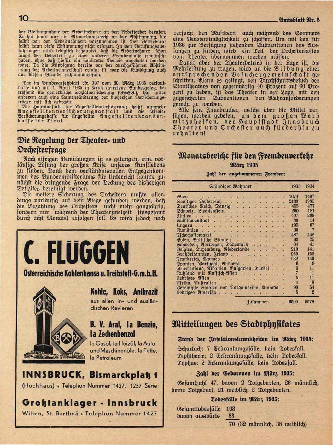 Stand der Infekttonskrankheiten im März 1935:
