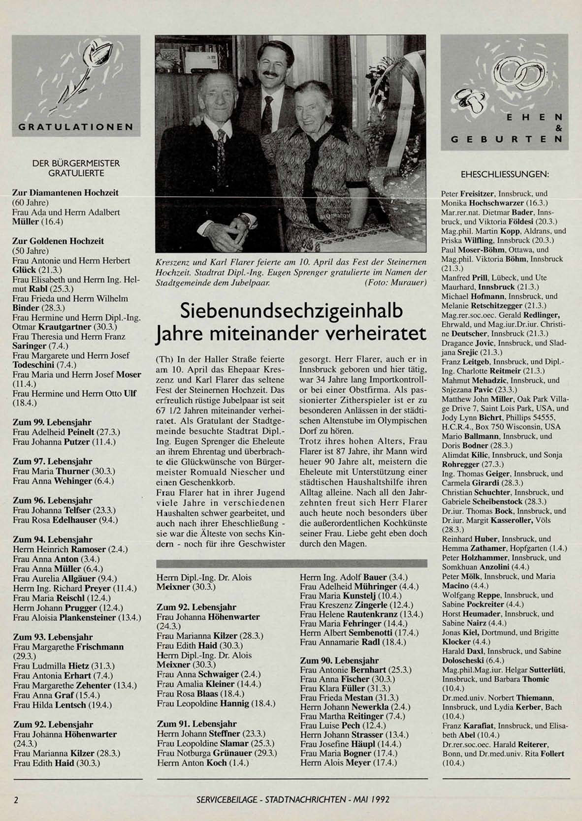 a m 10. April das Ehepaar Kreszenz und Karl Flarer das seltene